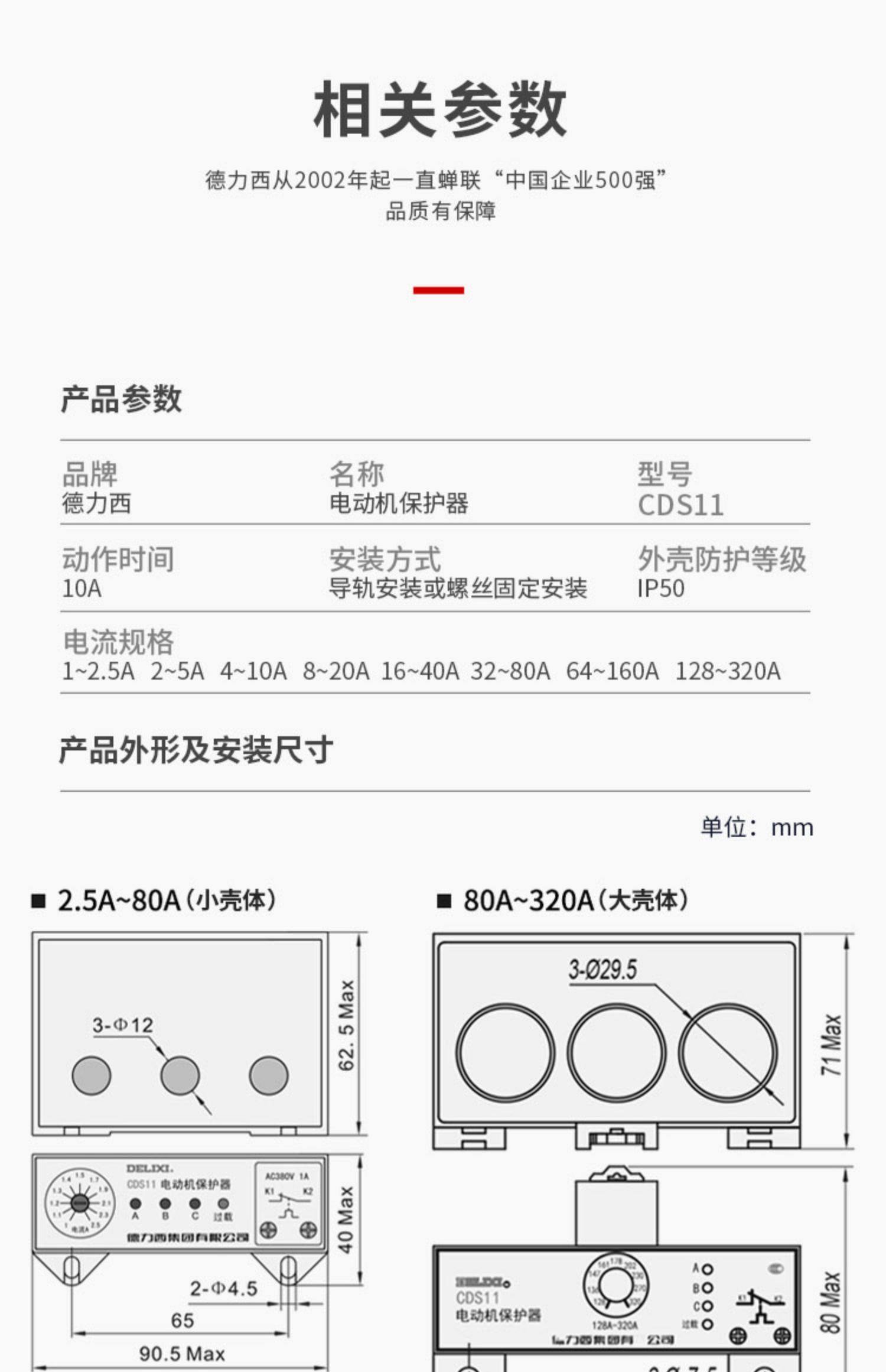 Delixi Cds11 Motor Comprehensive Protector Phase Failure Overload Adjustable Current 1A-320A Protector