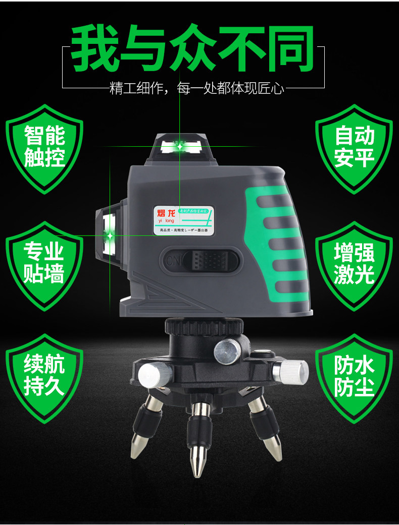 Yilong 12-Line Infrared Level Meter Green Light High-Precision Automatic Leveling 16-Line Level Meter Infrared Wall-Mounted Meter