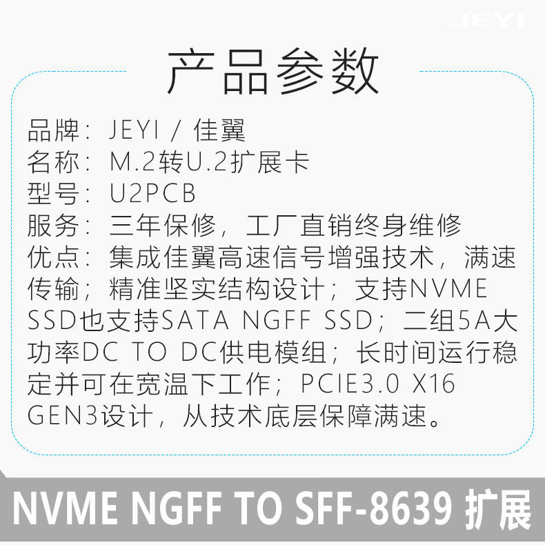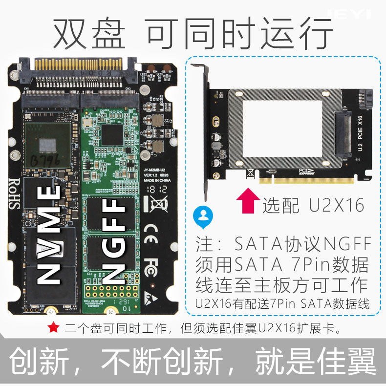 Jiayi U2X16 U.2 to Pcie3.0 X16 Adapter Card Mvne U2 Expansion Card Sff8639 Sata