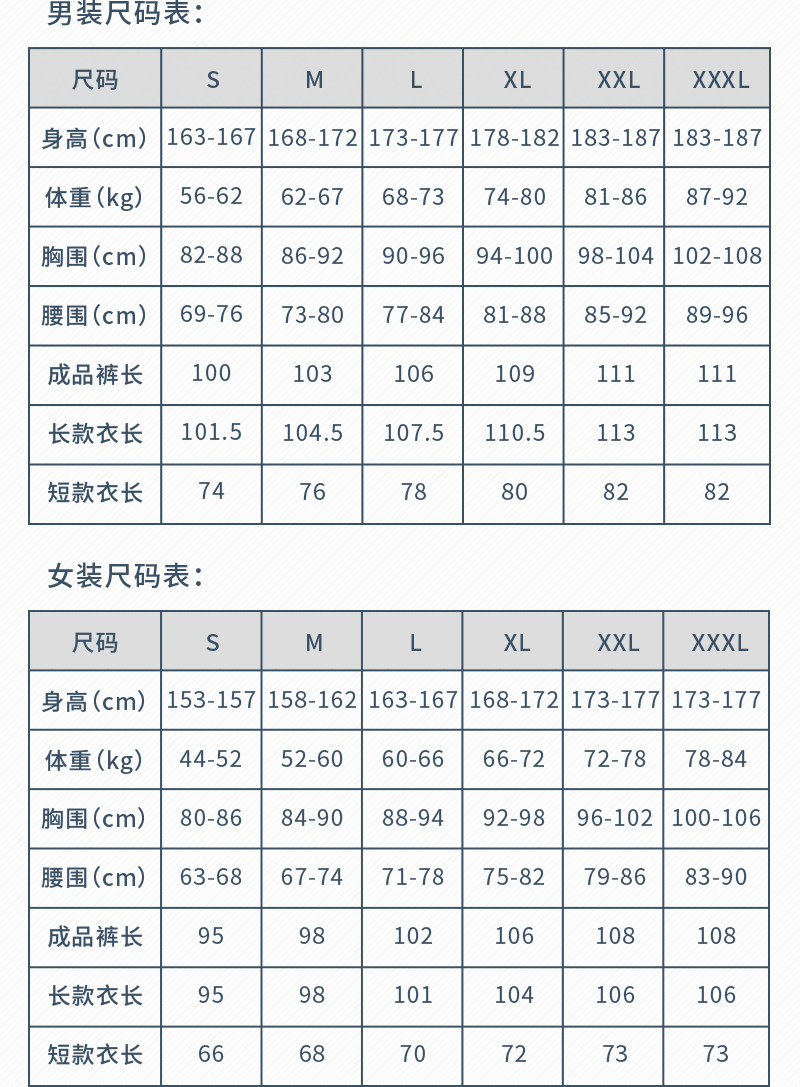 China (cm) 160-165/84-86 165-170 / 88-90 167-172 / 92-96 168-173 / 98-102 170-176 / 106-110