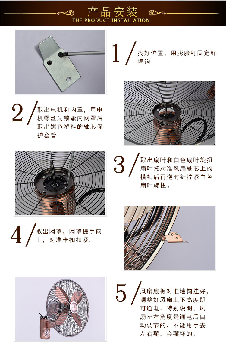 Retro Wall Fan for Home Use 16inch 18inch Metal Wall-Mounted Oscillating Fan for Restaurants and Hotels Antique Wall-Mounted Commercial Electric Fan