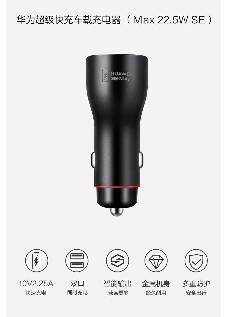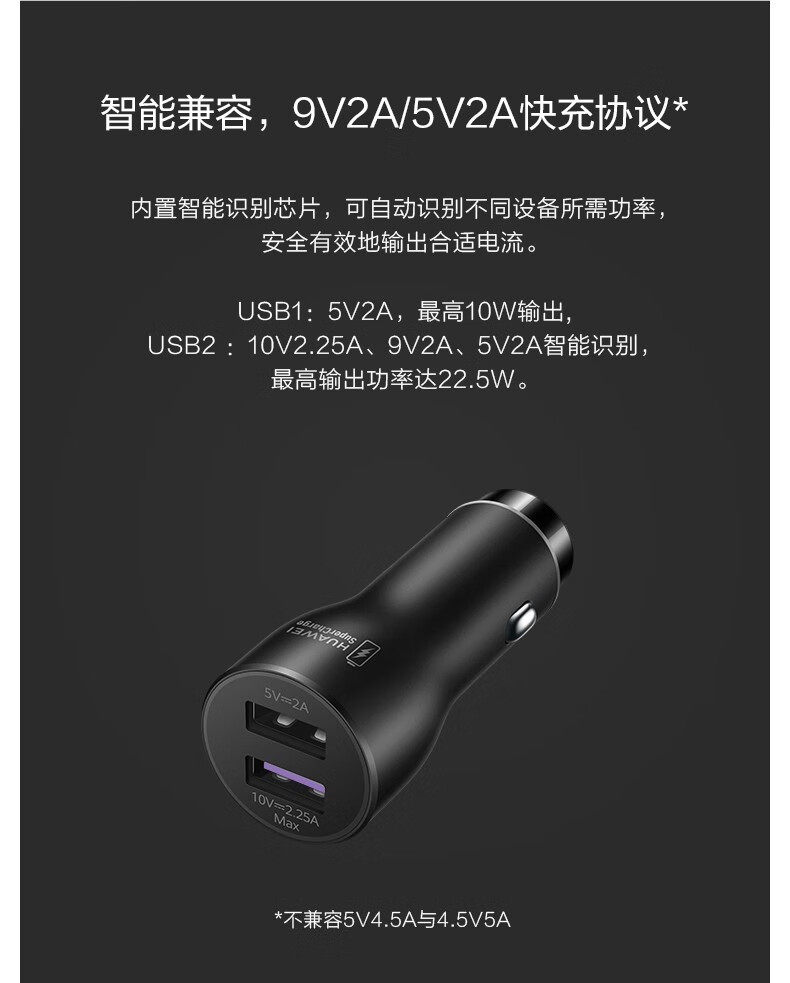 Huawei Original Car Charger 22.5W Flash Charging P30P20Mate20/30Nova5Pro Mobile Phone Ignition Cigarette Lighter Dual USB Fast Charging Car Charger Genuine