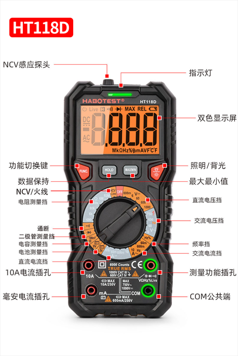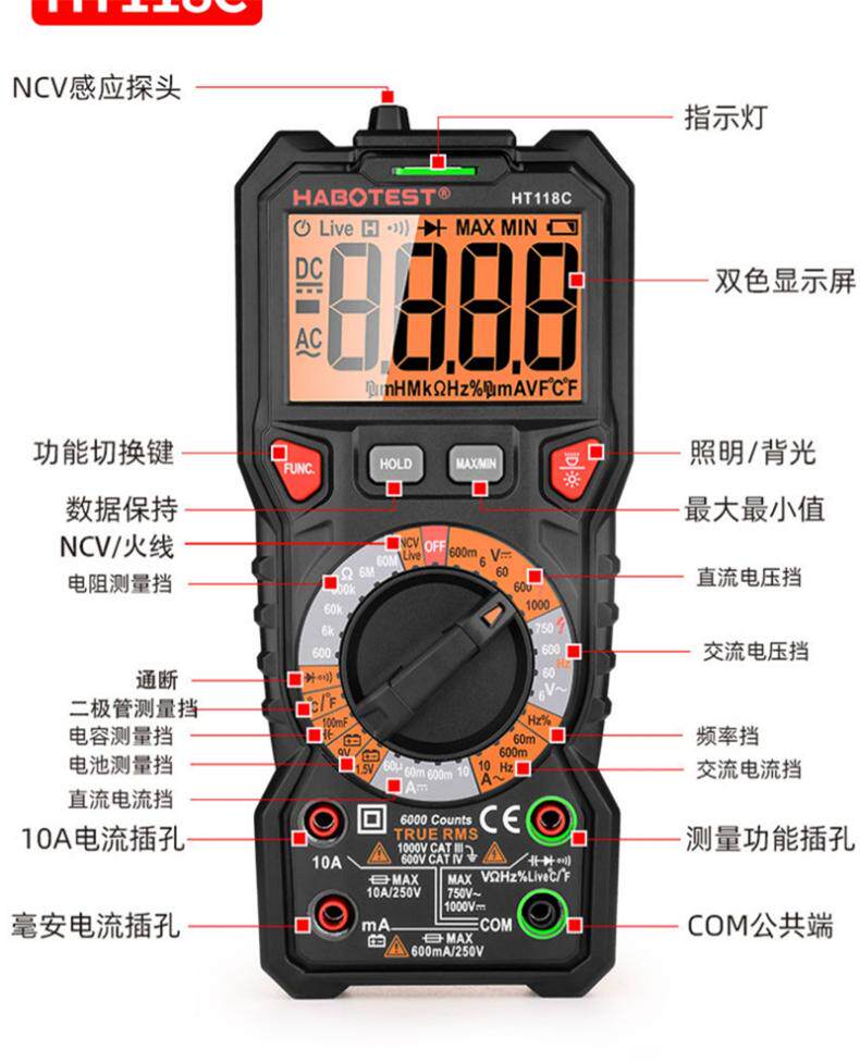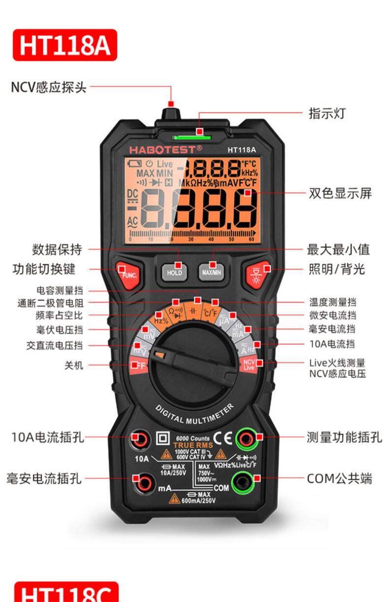 Habotest Ht118A/Ht118C/Ht118D High-Precision Smart Digital Multimeter Multi-Meter
