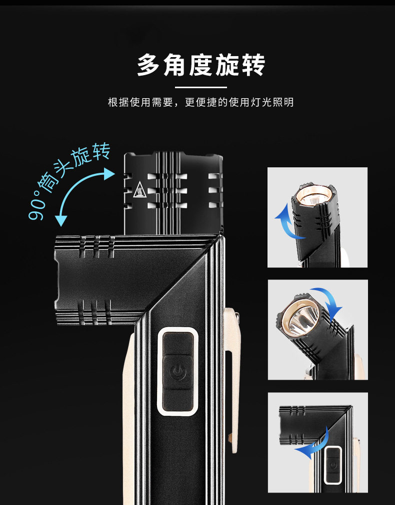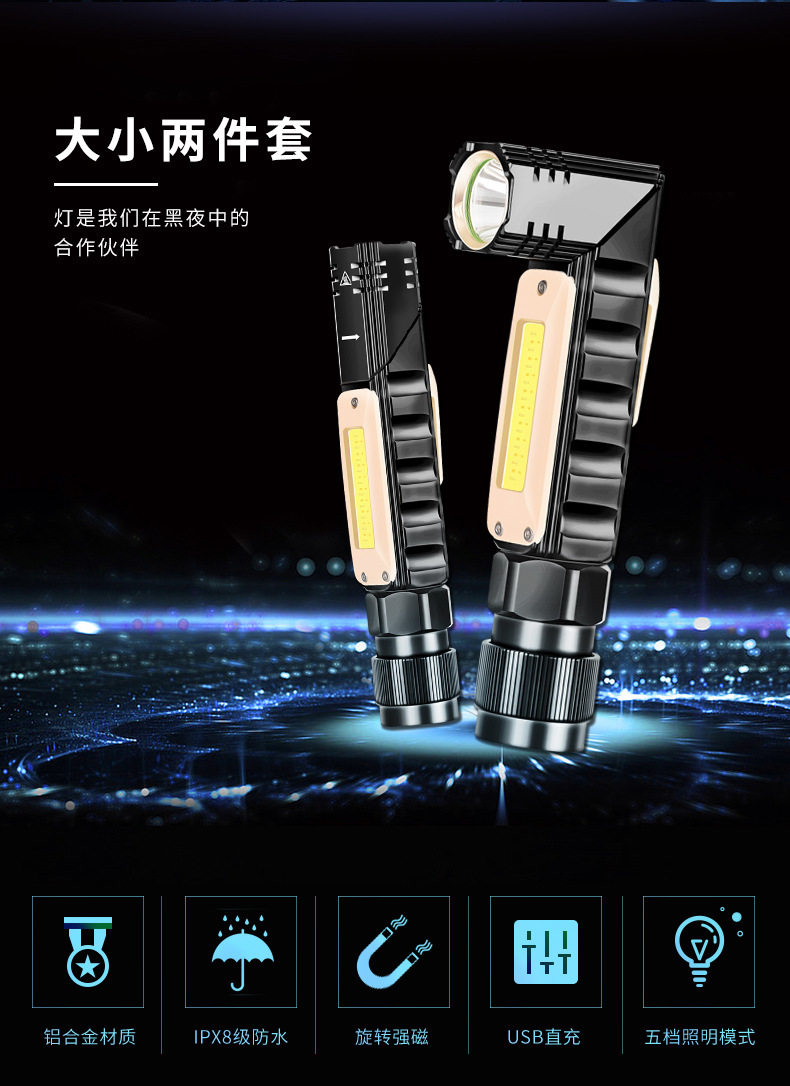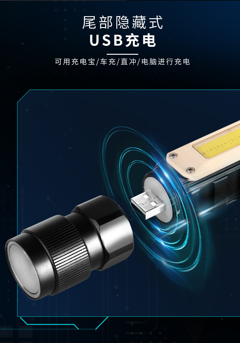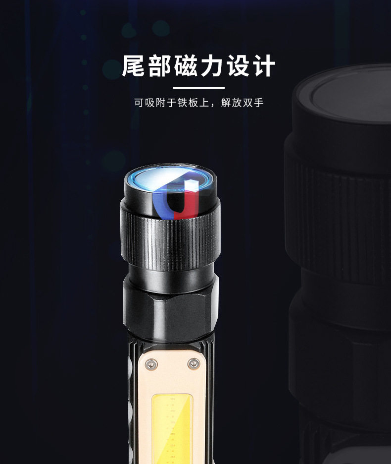 Car maintenance LED work light multi-functional strong magnetic super bright waterproof anti-fall inspection flashlight USB rechargeable headlight