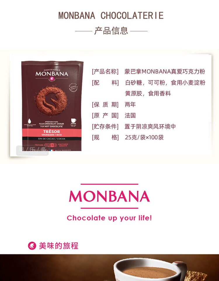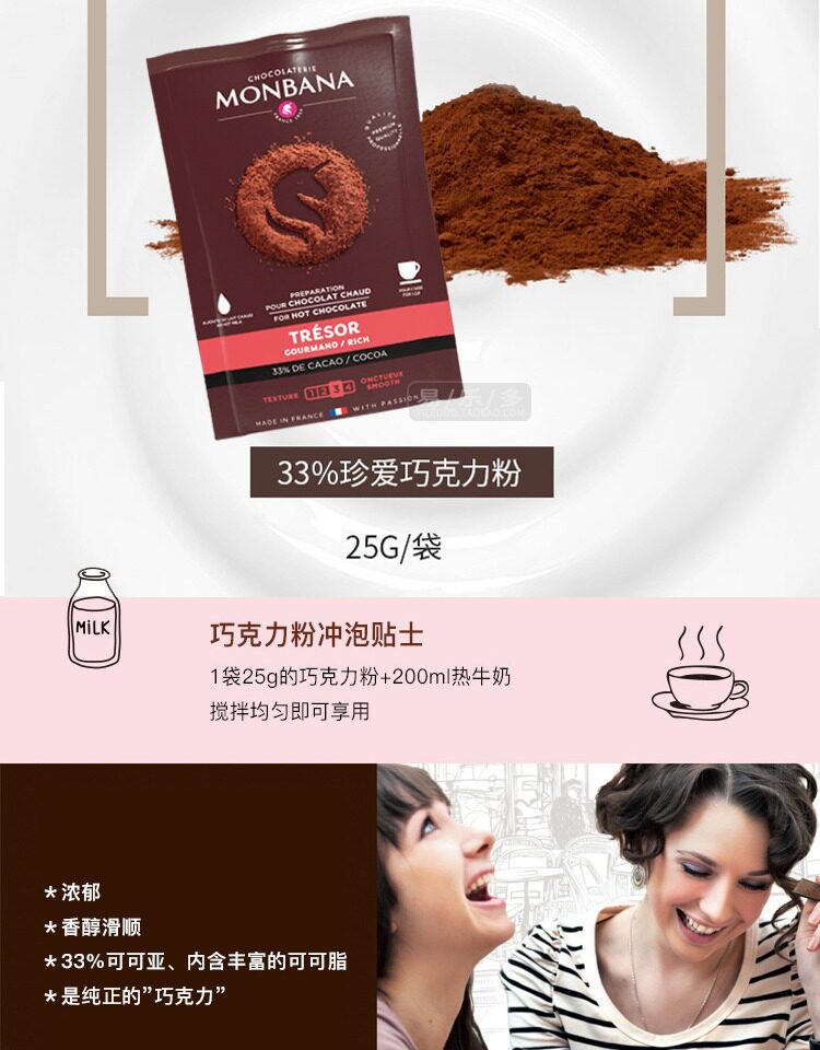 French Imported Monbana Chocolate Powder Cocoa Powder Hot Chocolate Drink Solid Beverage