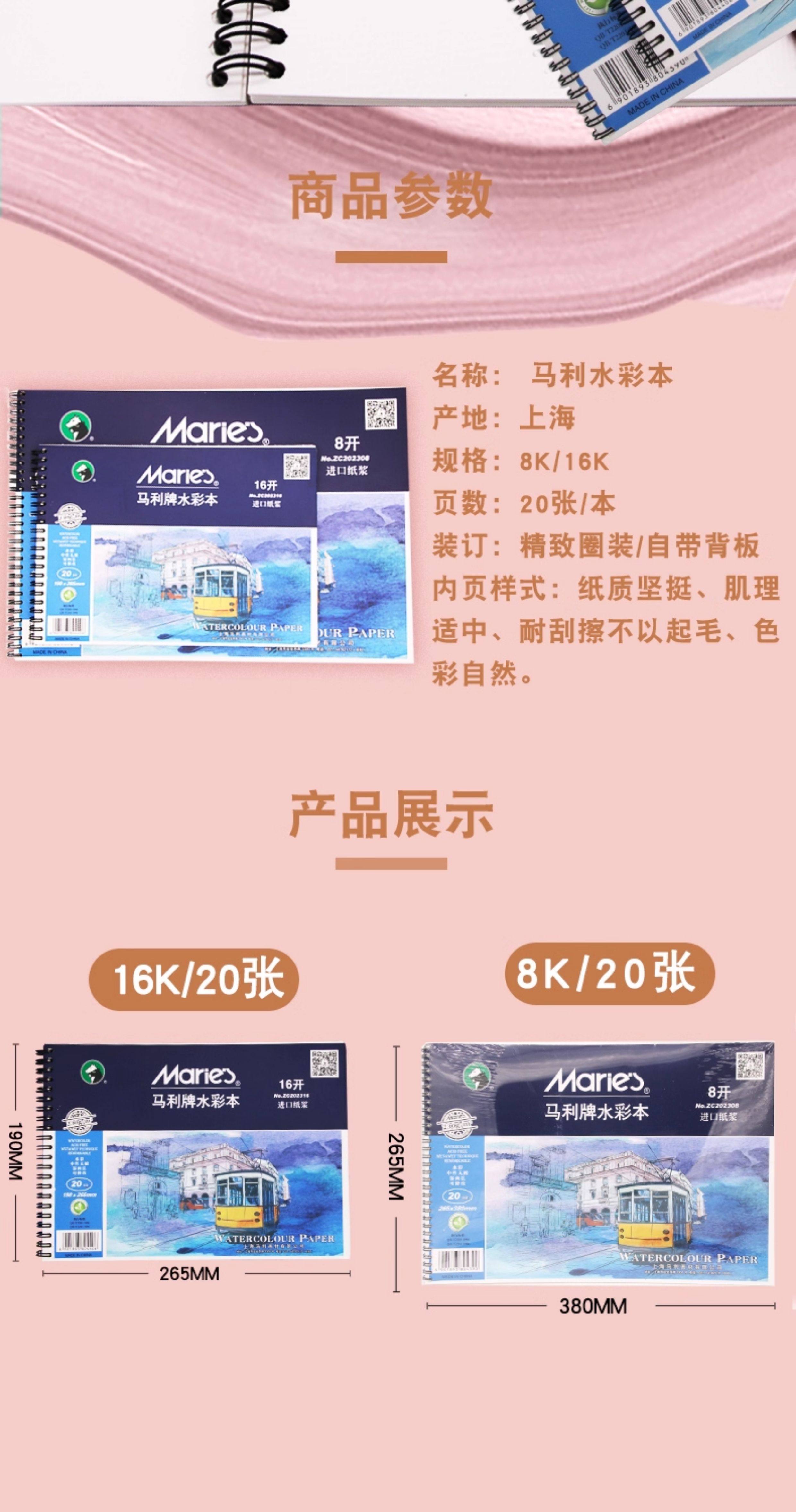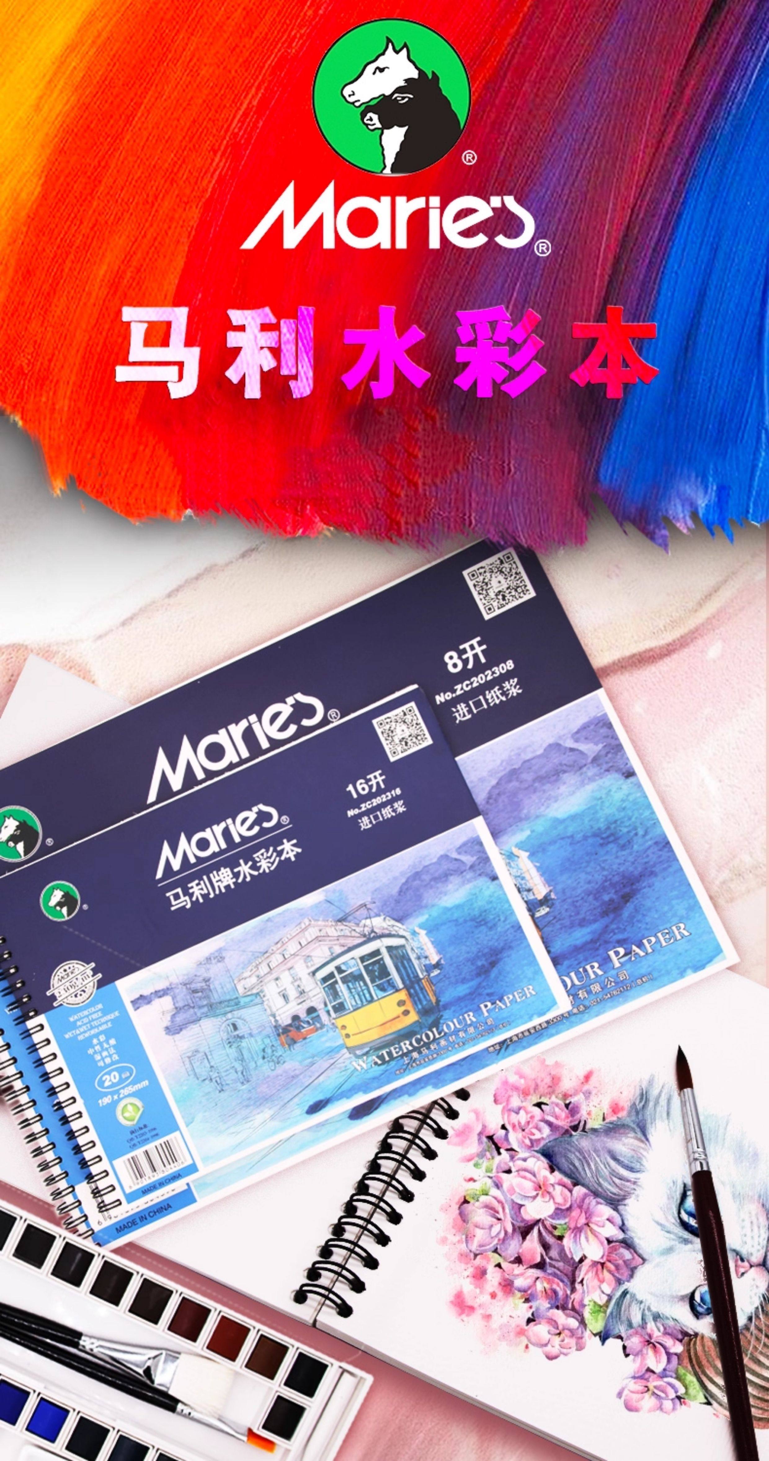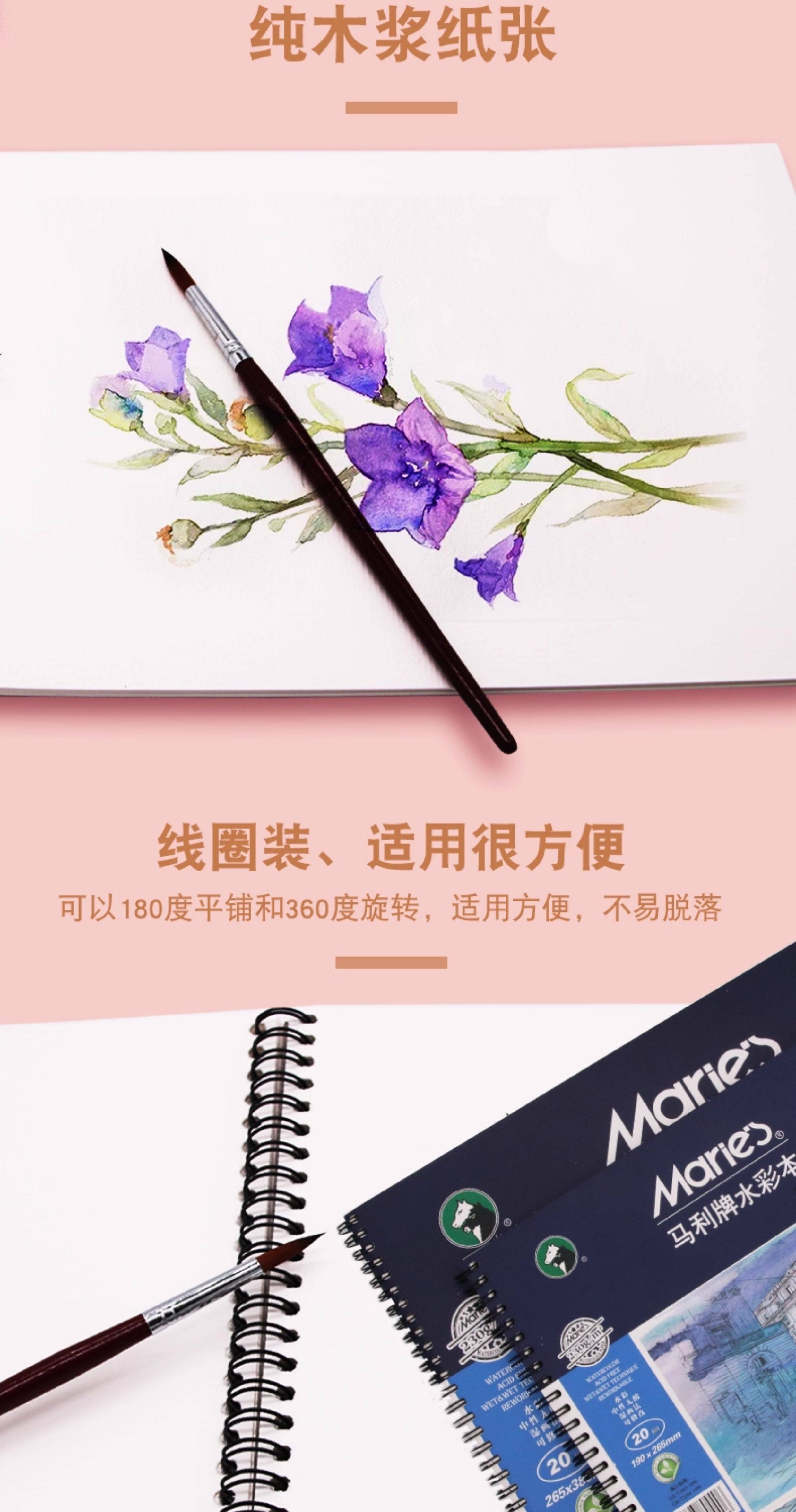 Authentic Marley Brand 16K/8K Watercolor Sketchbook, 230g Imported Pulp, Hand-Drawn Colored Pencil Watercolor Sketchbook, Spiral-Bound Loose-Leaf 20-Page Drawing Journal, Student Art Watercolor Paper, Hand-Drawn Blank Sketchbook