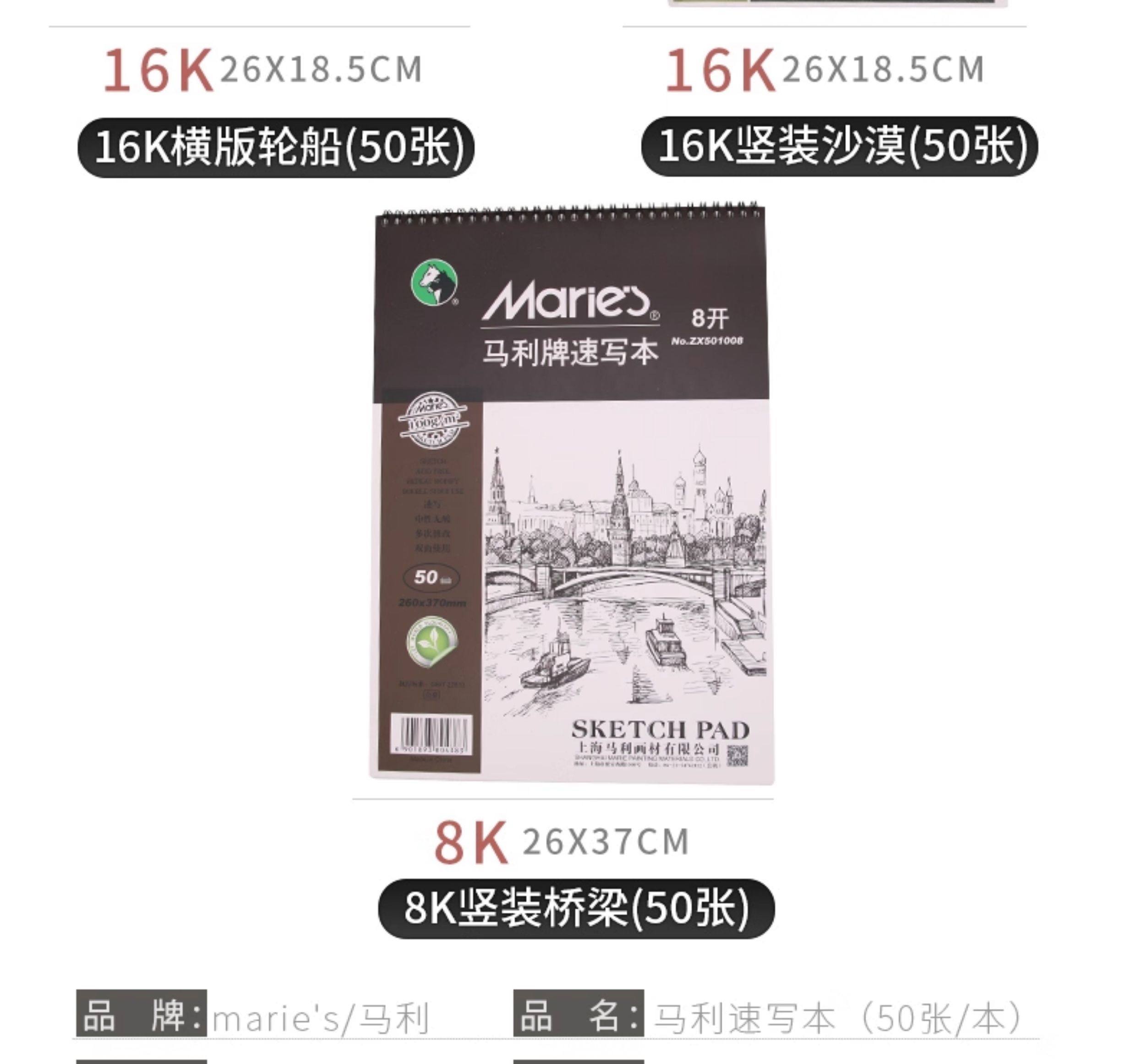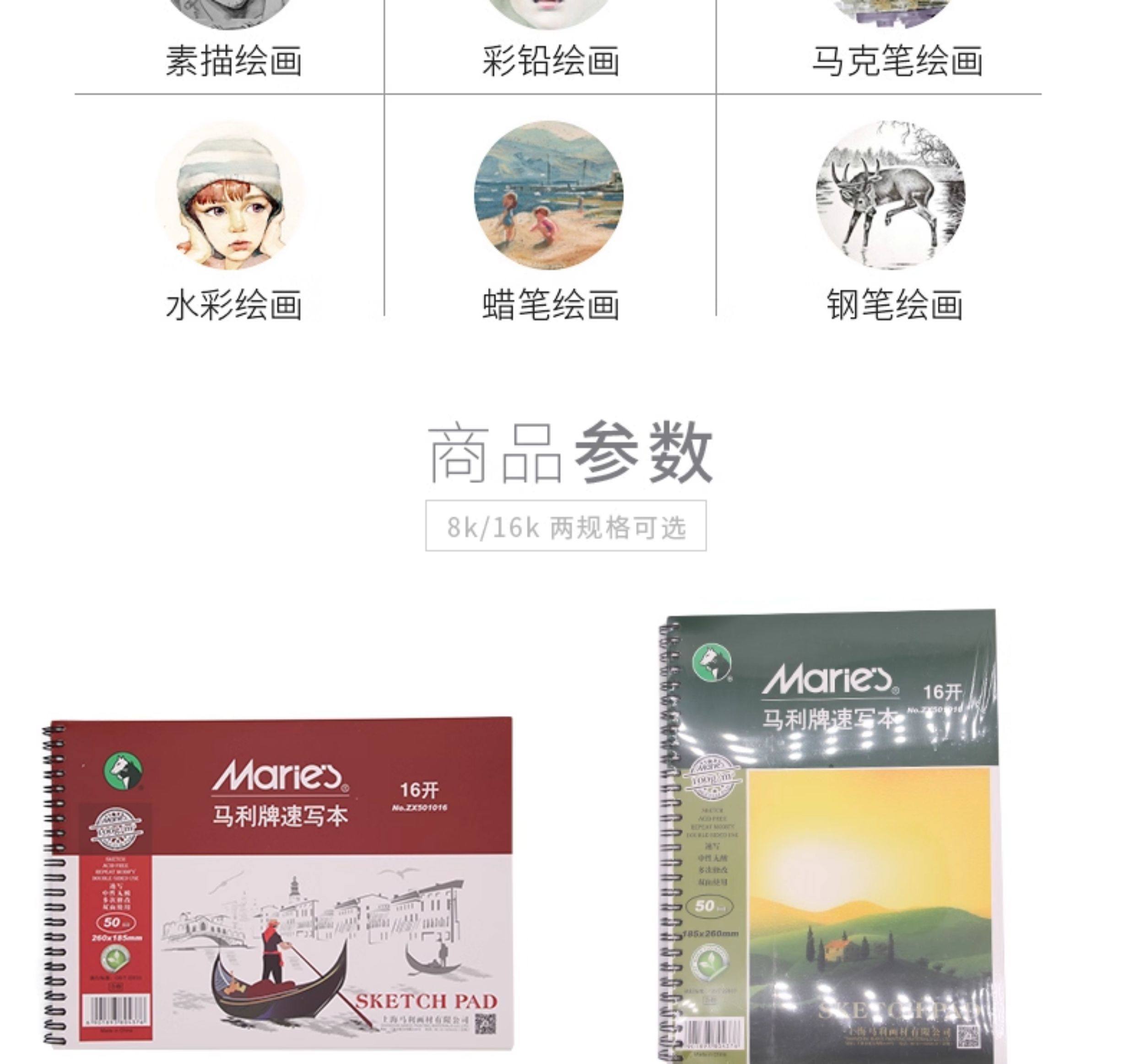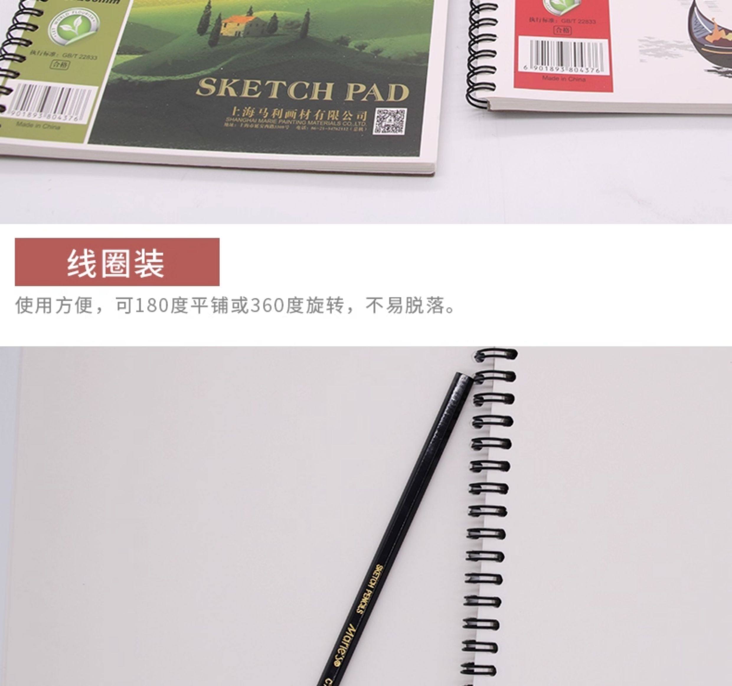 Authentic Marley Brand 16K/8K Watercolor Sketchbook, 230g Imported Pulp, Hand-Drawn Colored Pencil Watercolor Sketchbook, Spiral-Bound Loose-Leaf 20-Page Drawing Journal, Student Art Watercolor Paper, Hand-Drawn Blank Sketchbook