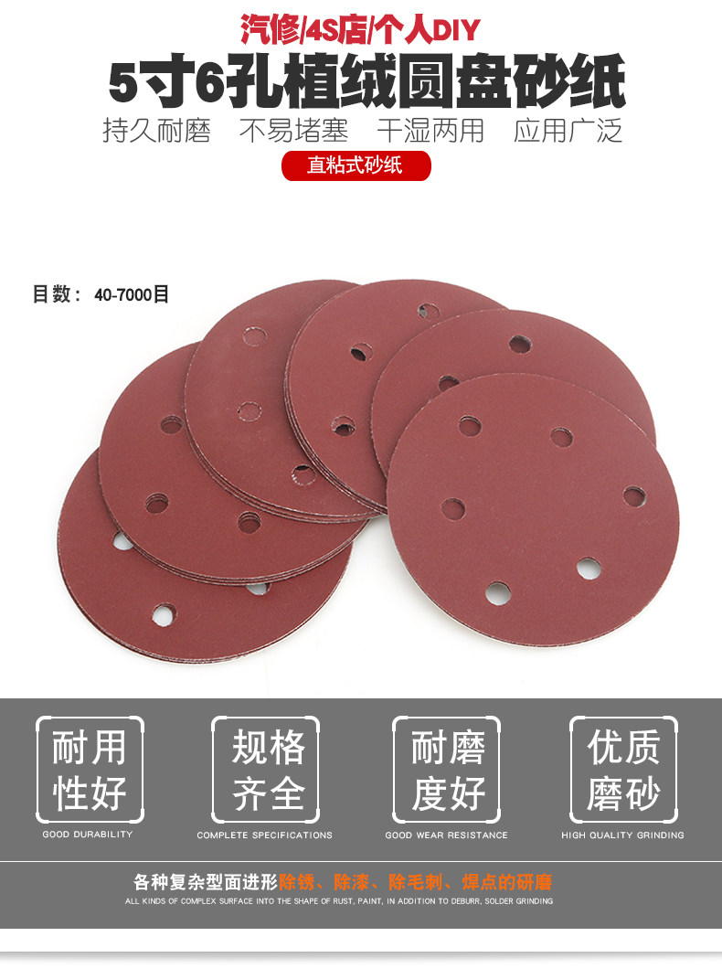 5inch Electric Pneumatic Grinder Polisher Disc Sandpaper Dry Grinding Flocking Pad Sandpaper Round Sanding Disc 125
