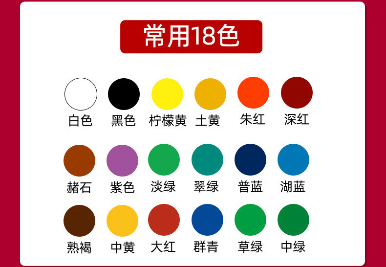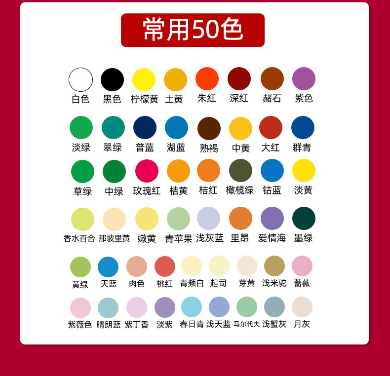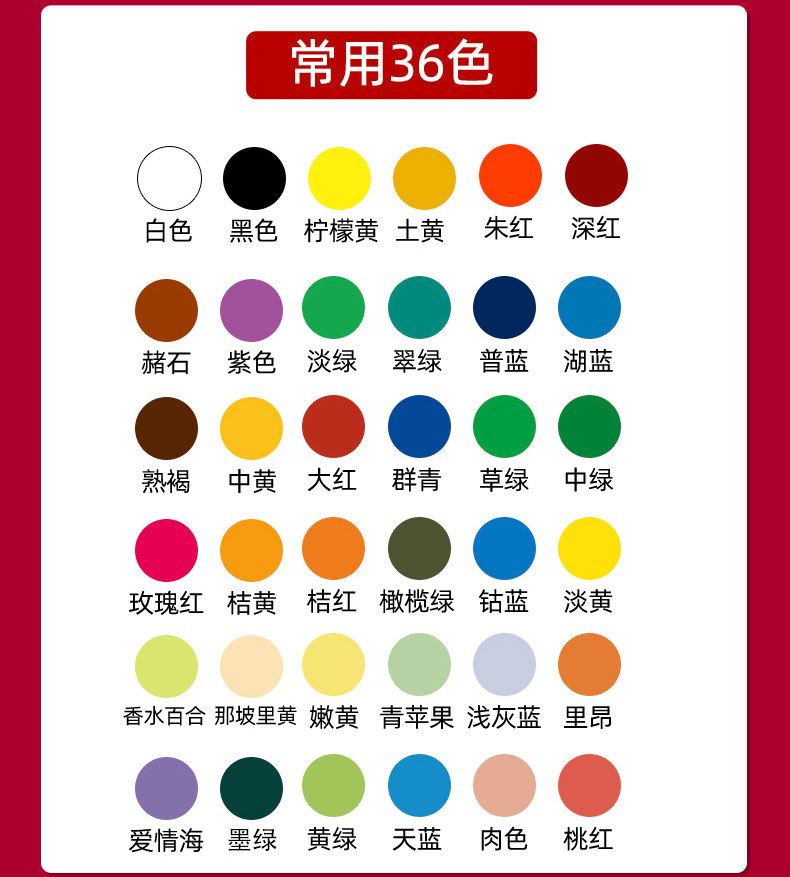 Sort by color 8K gouache paper,4K gouache paper,3 gouache pens,1 plum blossom palette,1 handheld oval palette,30 sheets of medium toning paper - double-sided - no-wash and tearable,30 sheets of large toning paper - double-sided - no-wash and tearable,12 commonly used colors,Commonly used 12 colors + 12-piece set,Commonly used 12 colors + 16-piece set,Commonly used 12 colors + 20-piece set,Commonly used 18 colors,Commonly used 18 colors + 12-piece set,Commonly used 18 colors + 16 piece set,Commonly used 18 colors + 20-piece set,Commonly used 24 colors,Commonly used 24 colors + 12-piece set,Commonly used 24 colors + 16-piece set,Commonly used 24 colors + 20-piece set,Commonly used 36 colors,50 commonly used colors,102-white,111-Qingpinbai,210-Napoli yellow,215- lemon yellow,216-light yellow,219-flesh color,227-medium yellow,244-tender yellow,250-cheese,251-bud yellow,259-Light camel,301-orange,302-big red,313-orange,315-Crimson,317-rosé,324-Zhu Hong,336-rose red,369-Lyon,370-Rose,377-Lagerstroemia color,423-clear blue,431-Aegean Sea,432-Lilac,434-Lavender,439-Purple,443-ultramarine,445-Plan,447-Sky Blue,453-Cobalt blue,455-Lake Blue,477-light gray blue,480-Spring Green,481-light sky blue,503-light green,505-medium green,520-Maldives,535-green apple,537-Perfume Lily,560-emerald green,562-yellow green,568-grass green,569-olive green,572-dark green,676-khaki,684-Ochre,687-cooked brown,765-light crab gray,773-moon gray,793-black