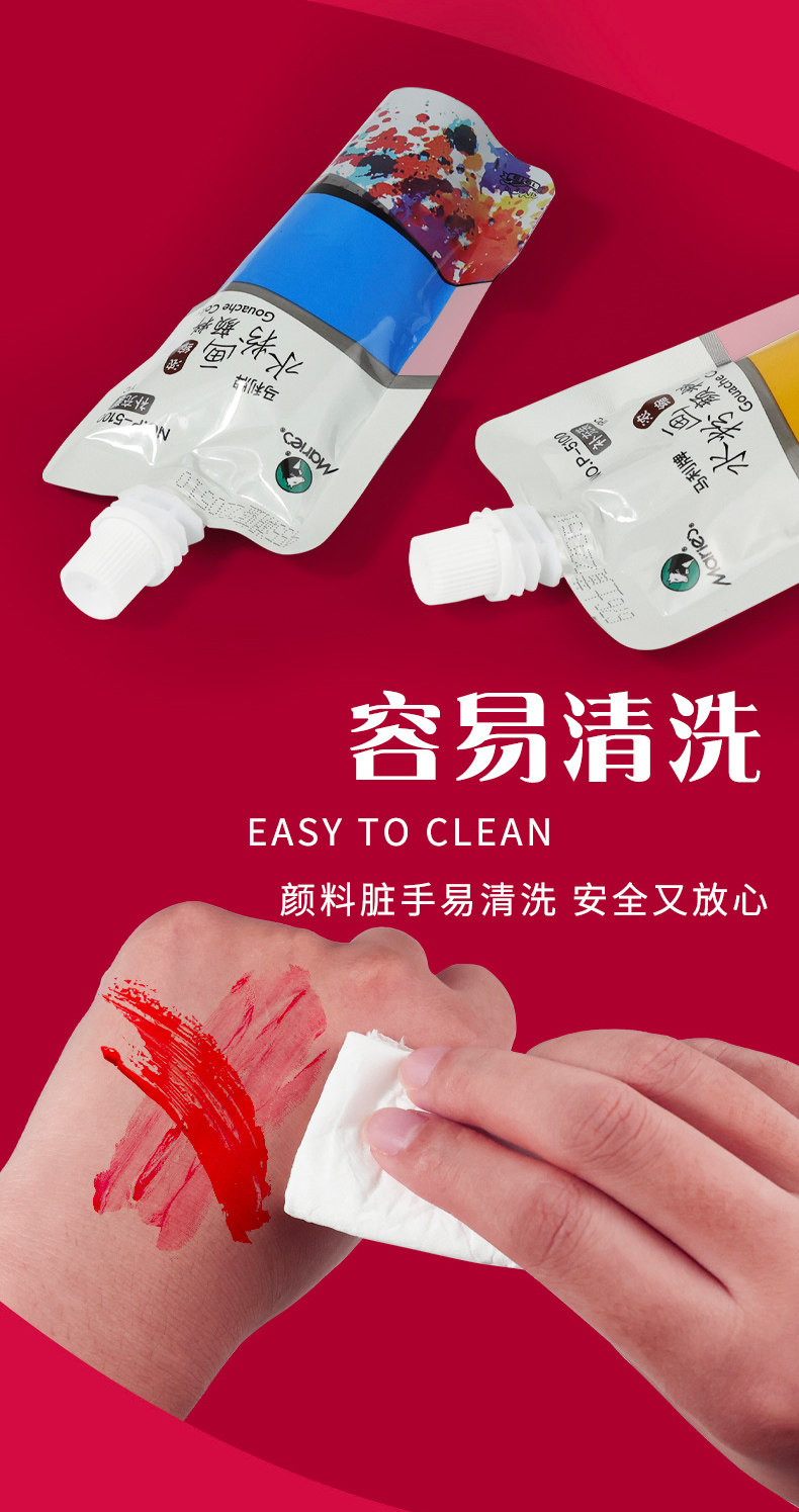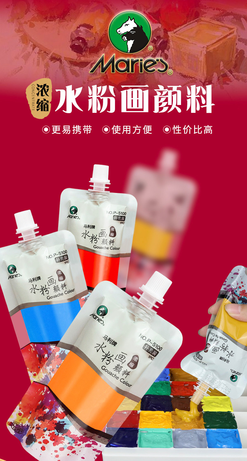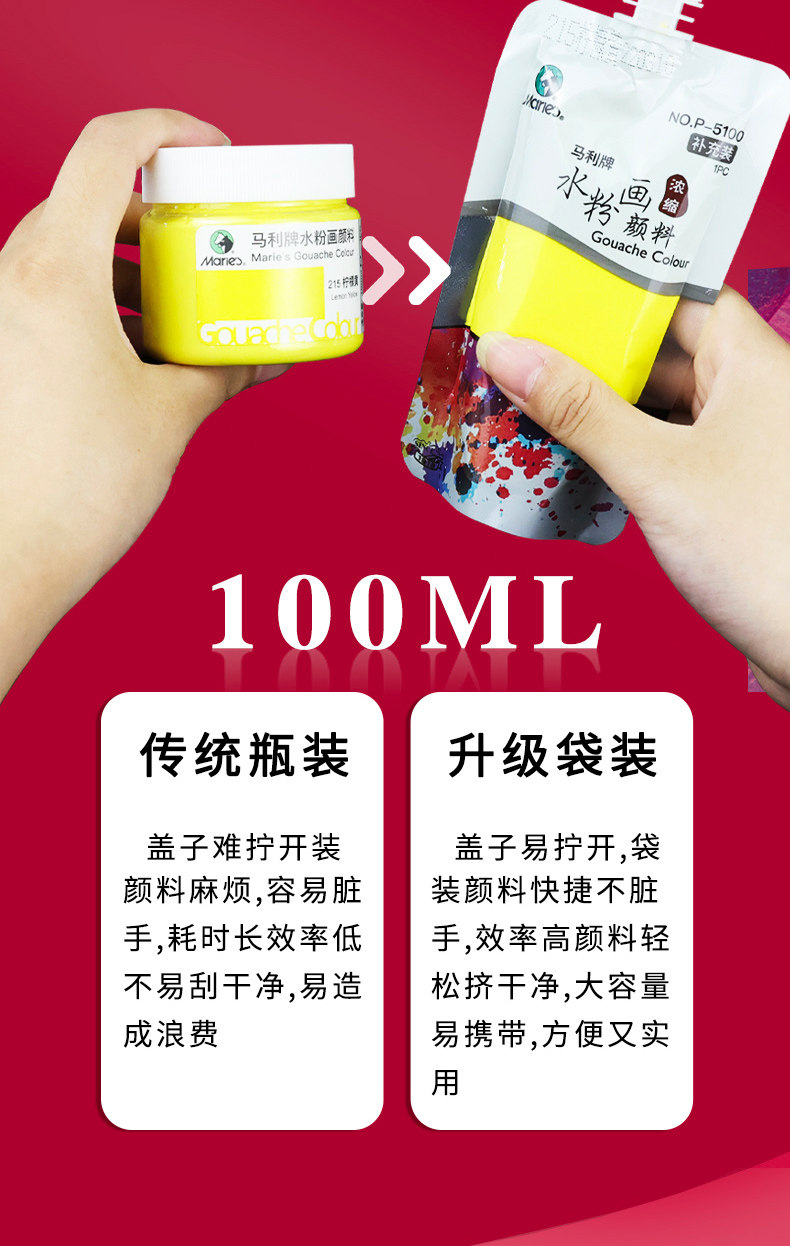 Marley brand 100ml bagged gouache paint set, 50-color concentrated advertising paint for professional art students, squeeze type, beginners, children's kindergarten, non-toxic, washable, Mary supplement complete