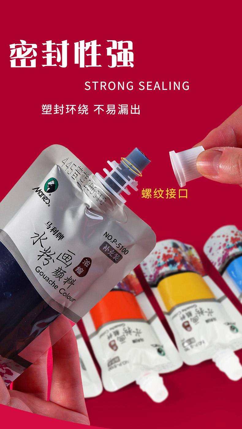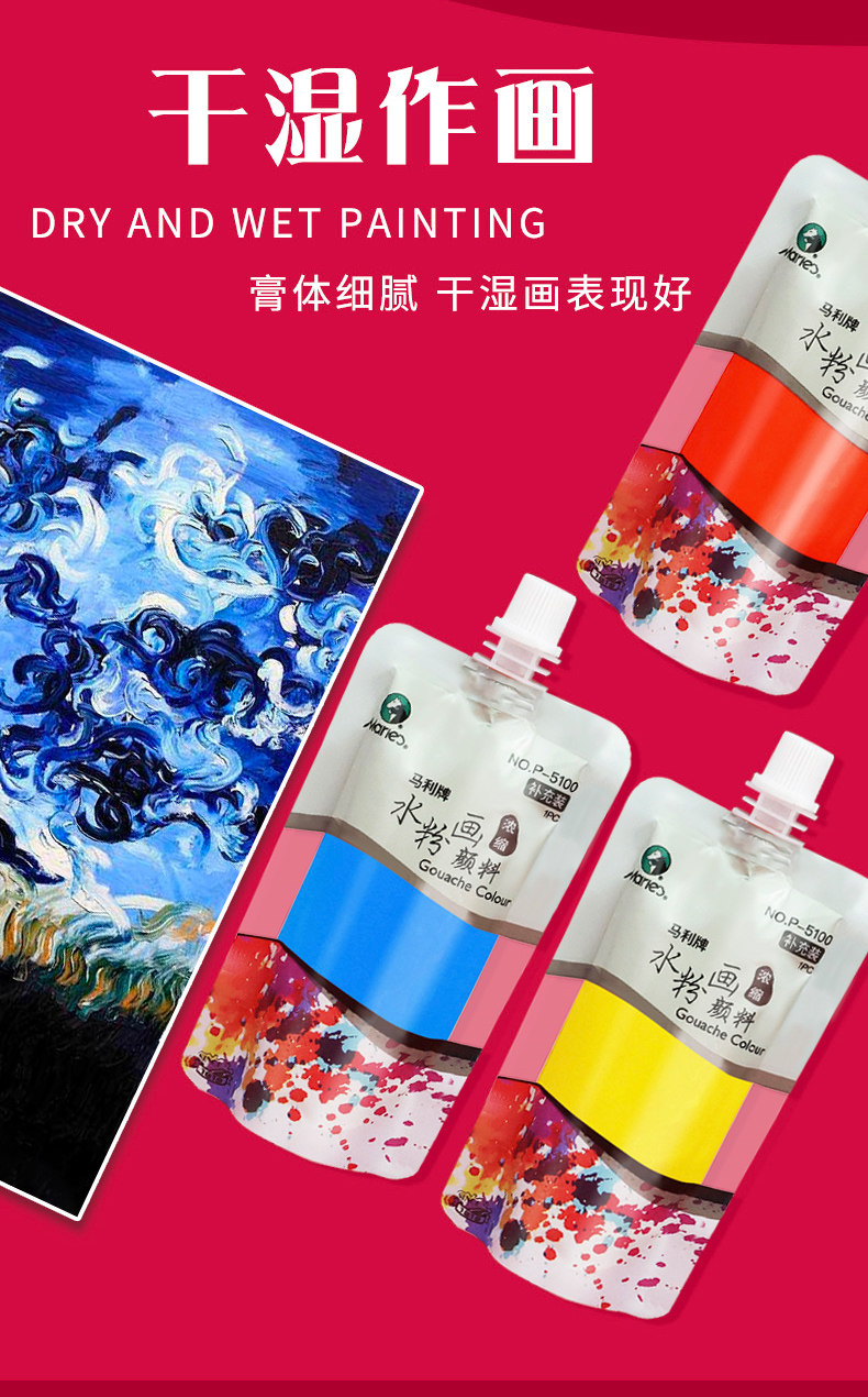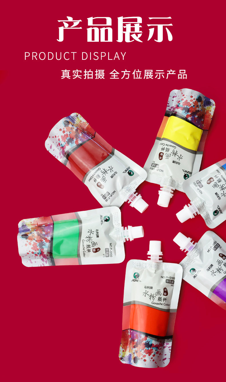 Marley brand 100ml bagged gouache paint set, 50-color concentrated advertising paint for professional art students, squeeze type, beginners, children's kindergarten, non-toxic, washable, Mary supplement complete