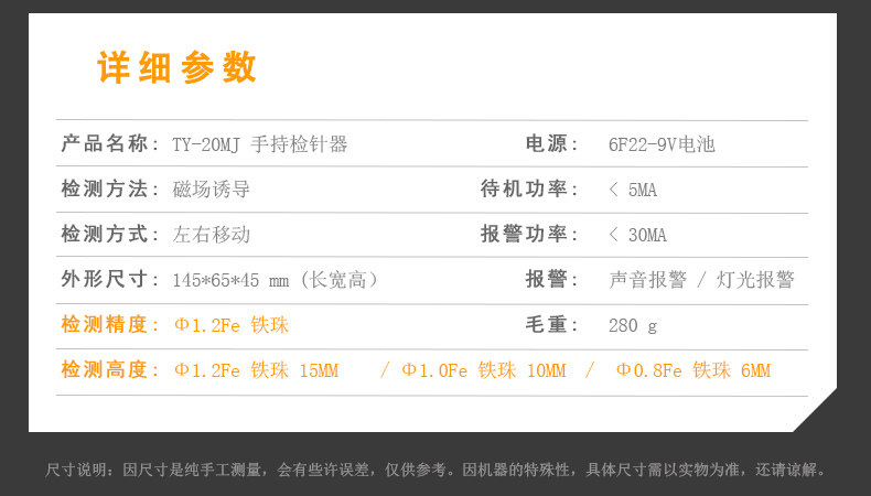 Metal Detector Ty-20Mj/Ty-25Mj High-Precision Clothing Iron Probe Machine Clothing Broken Needle Probe