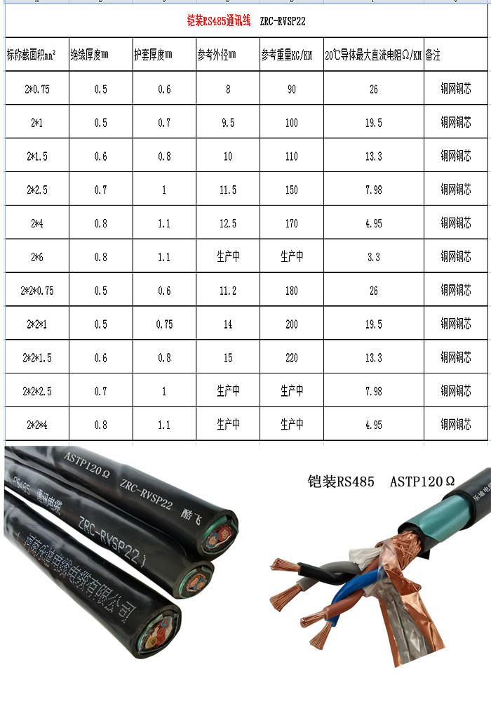 Wire and Cable Model Armored Rs485 Zrc-Rvsp22
