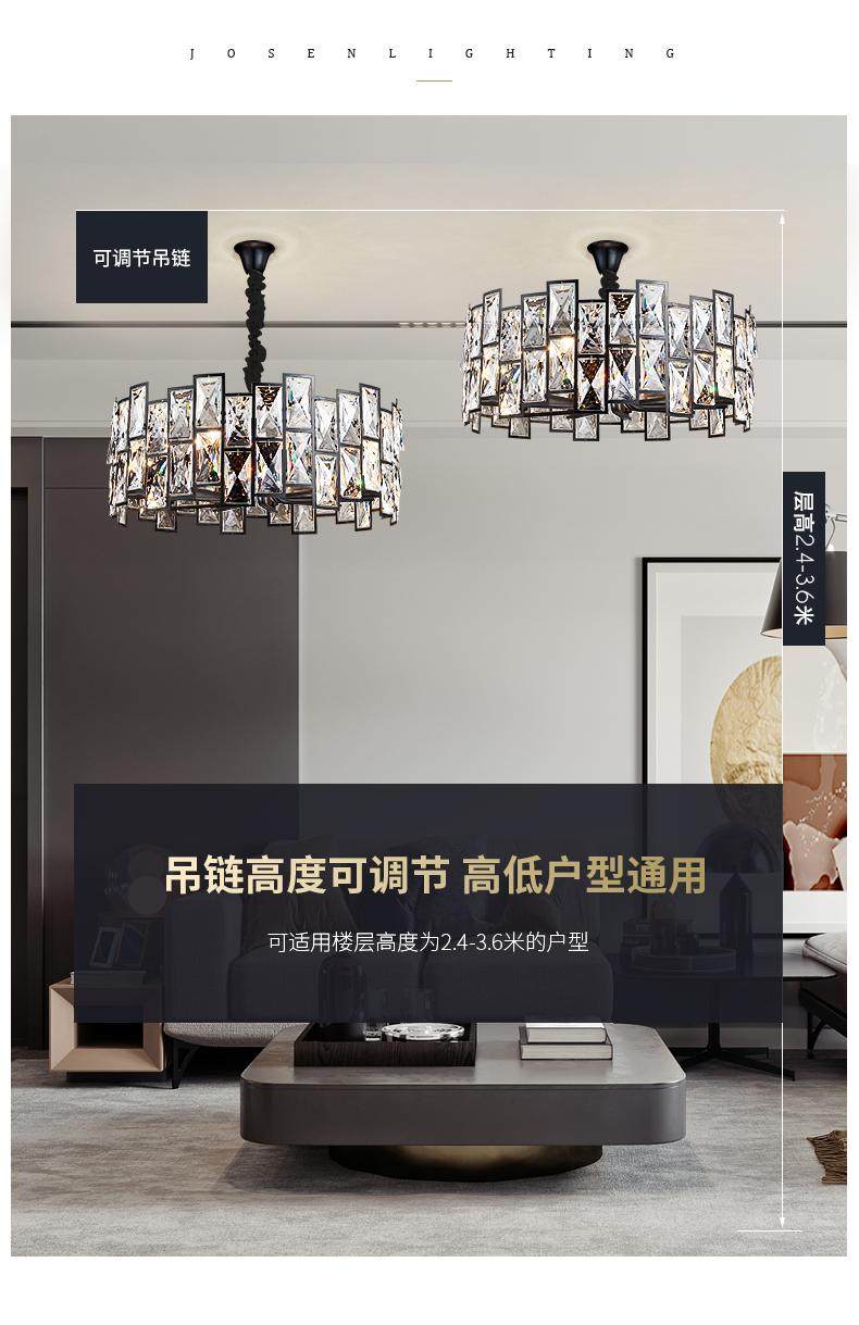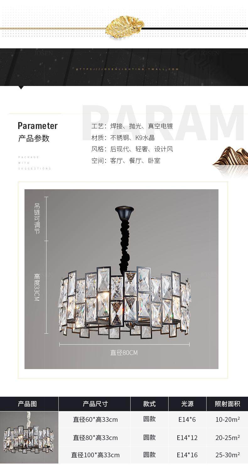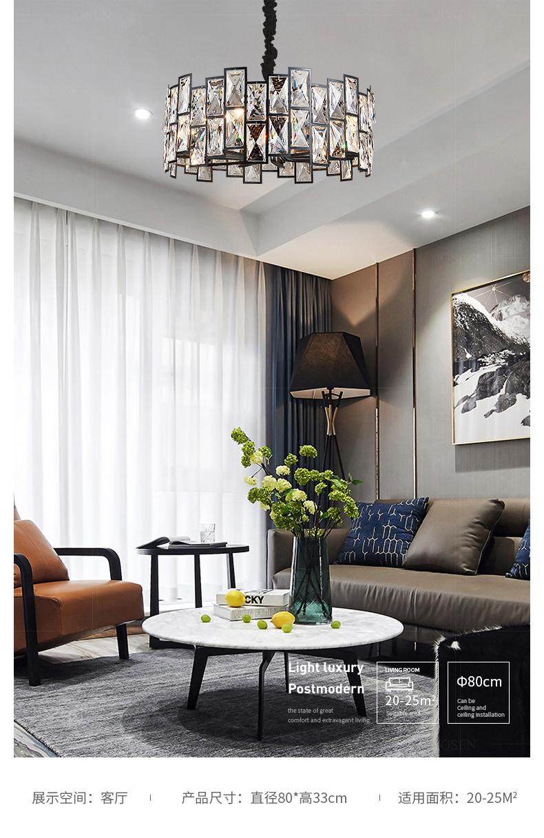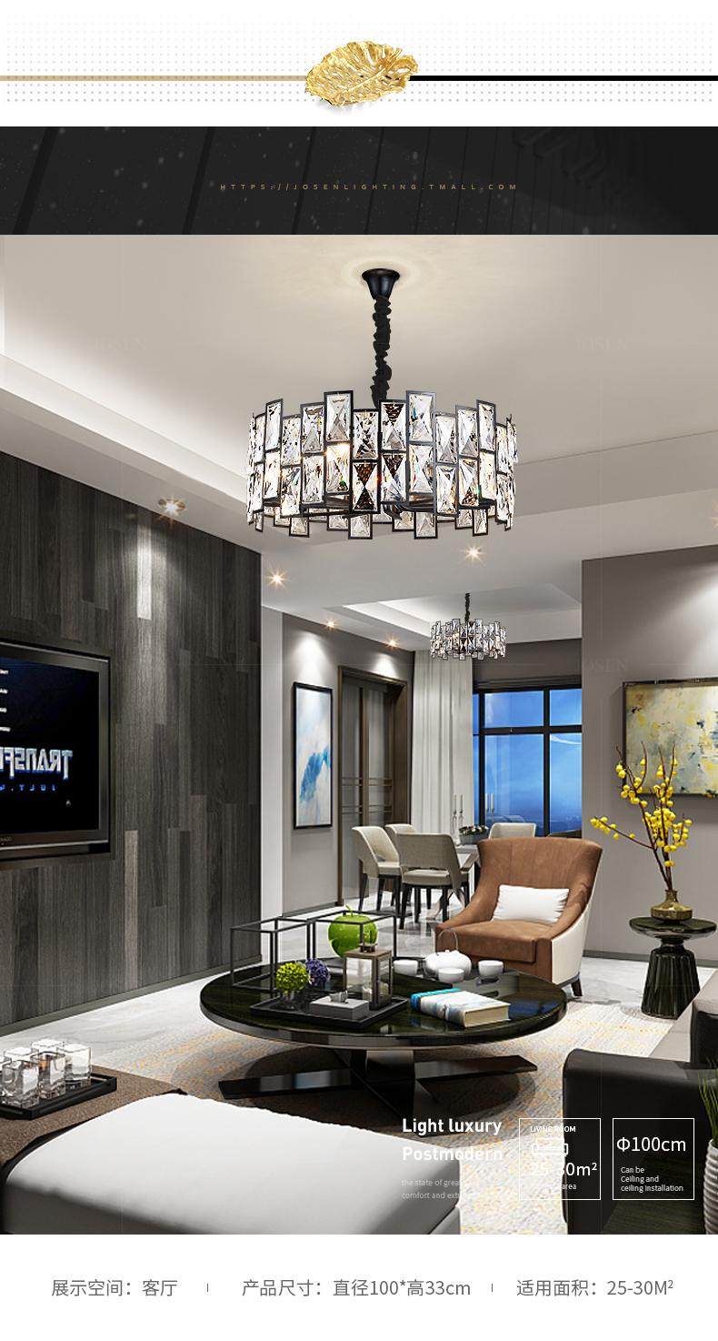 American-Style Light Luxury Living Room Lamp, Post-Modern and Elegant, Round Dining Room Lamp, K9 Crystal Lamp, Simple Nordic Chandelier