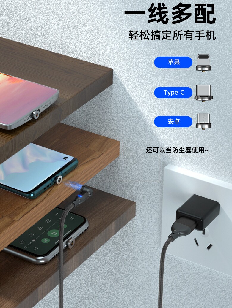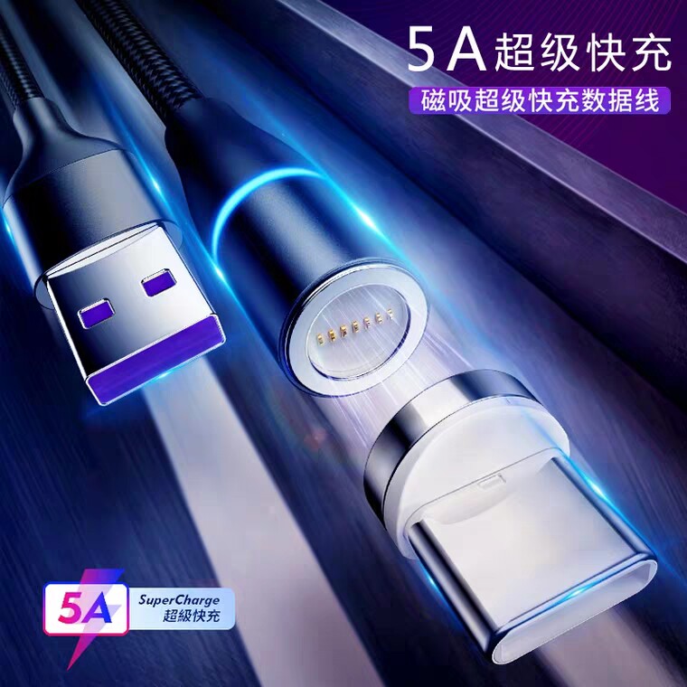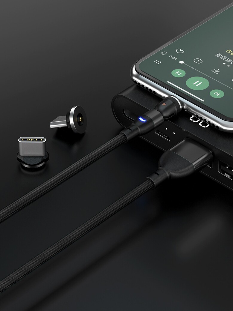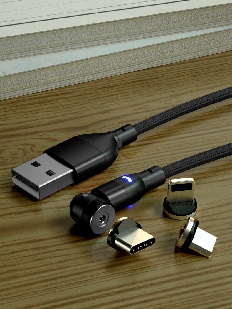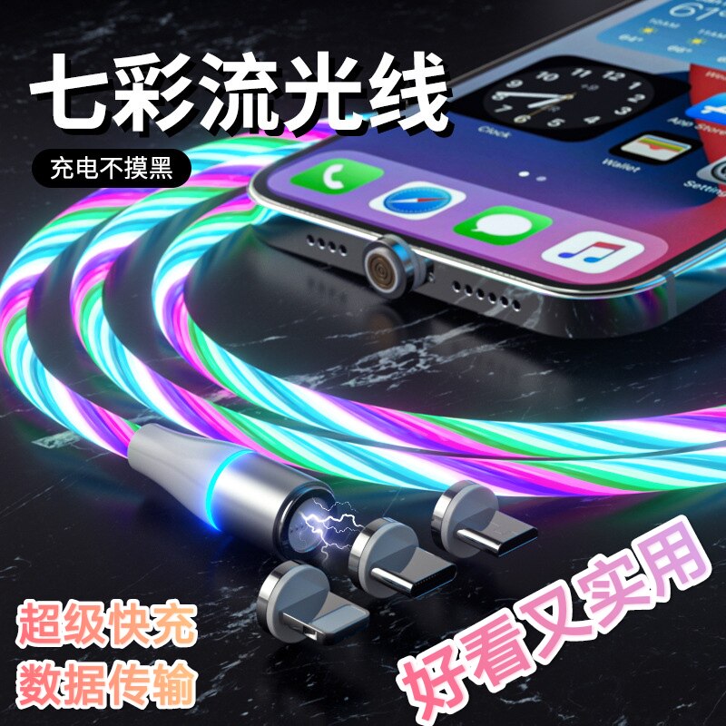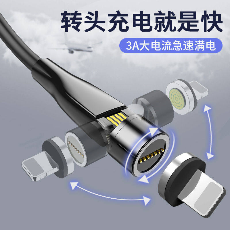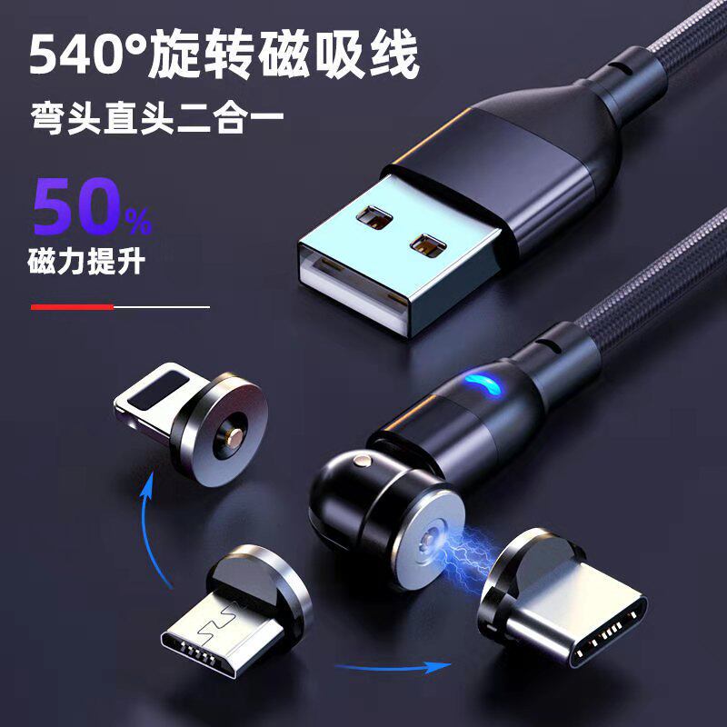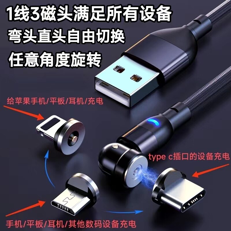 Rotating Magnetic Data Cable Magnetic Head Organizer 540 ° Magnetic Fast Charging Cable Blind Suction Magnetic Three-In-One 360 ° Single Contact 7-Contact Universal Nylon Silicone Magnetic Suction Cable Flow Light Cable