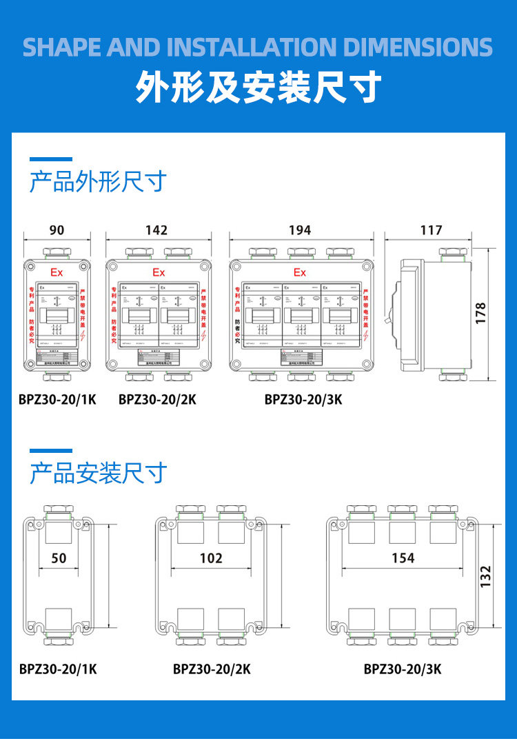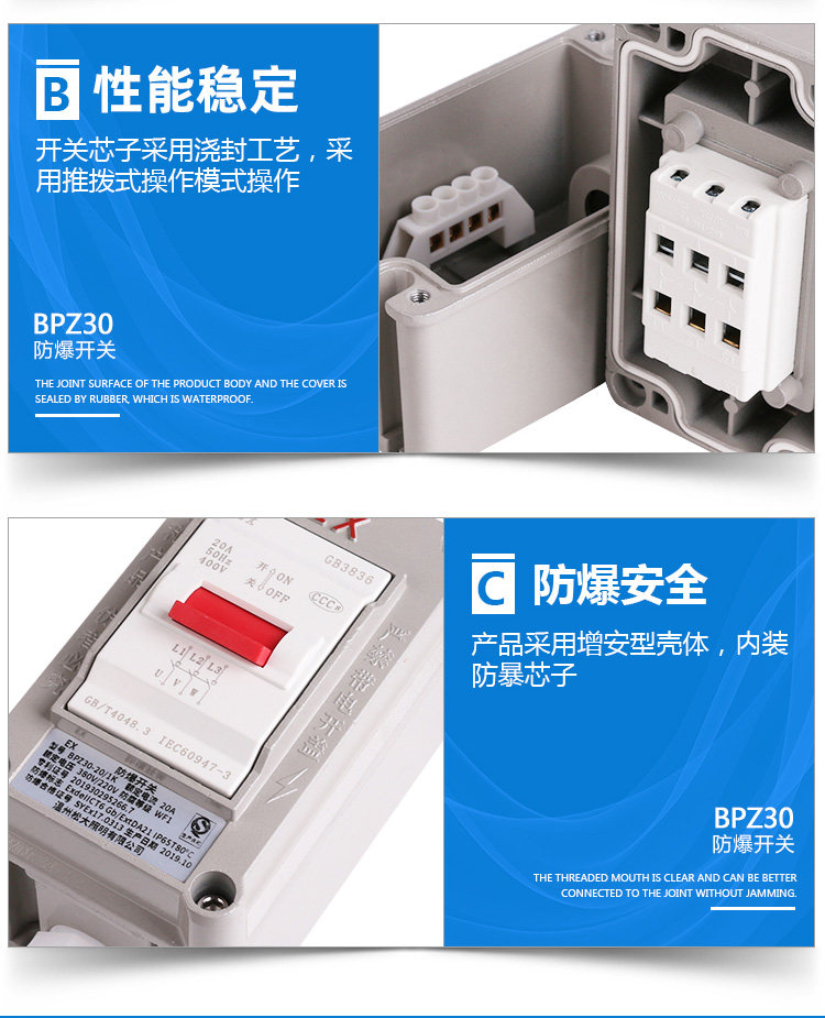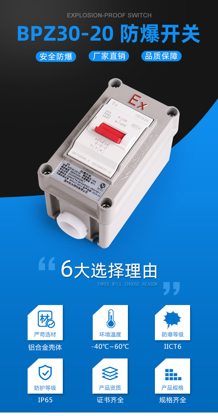 National Standard Explosion-Proof Wall Switch Three-Phase 380V 220V Circuit Breaker Box Lighting Distribution Box Songda Bpz30