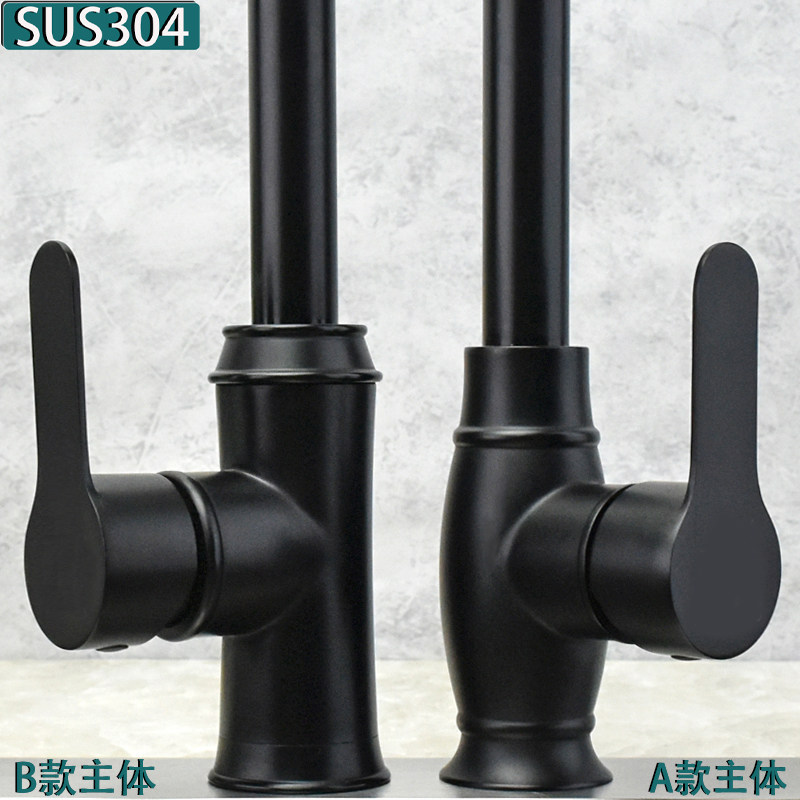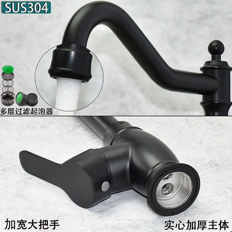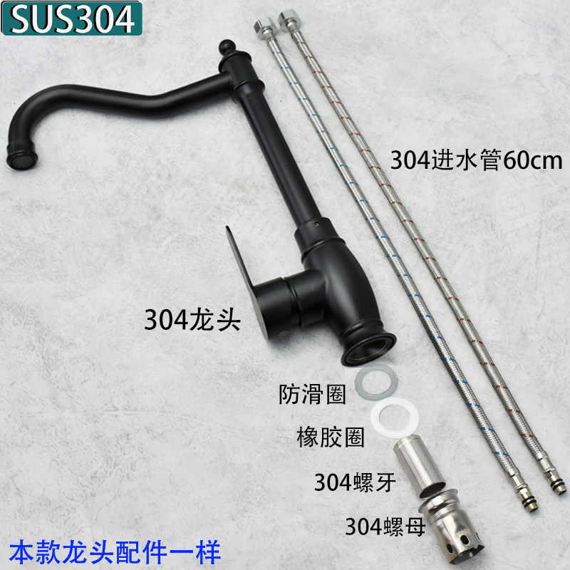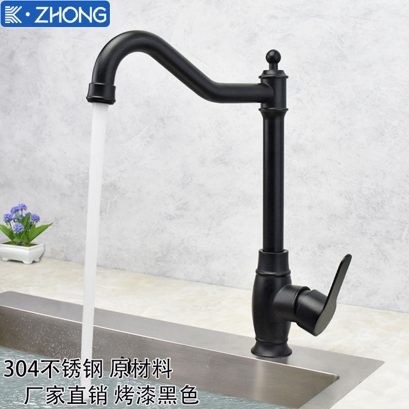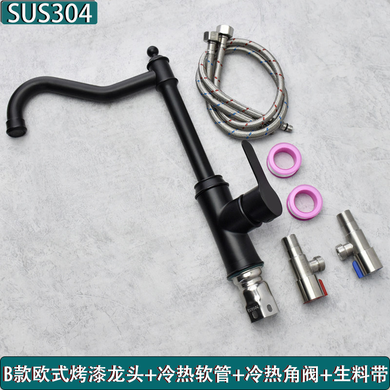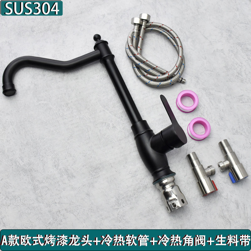 European-Style Kitchen 304 Stainless Steel Faucet Hot and Cold Household Sink Washbasin European-Style Black Faucet