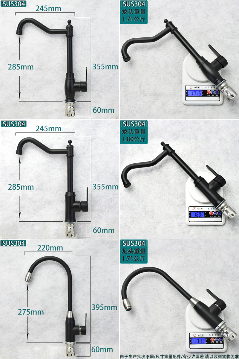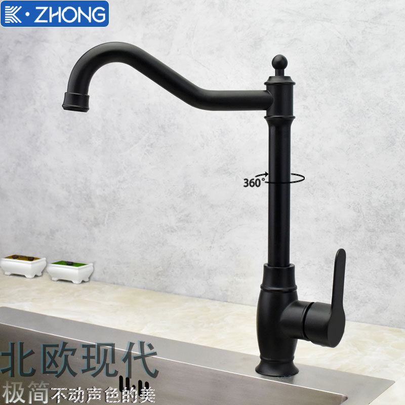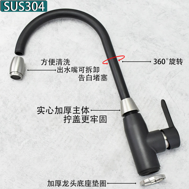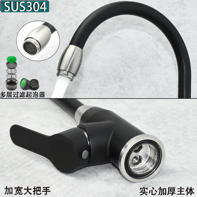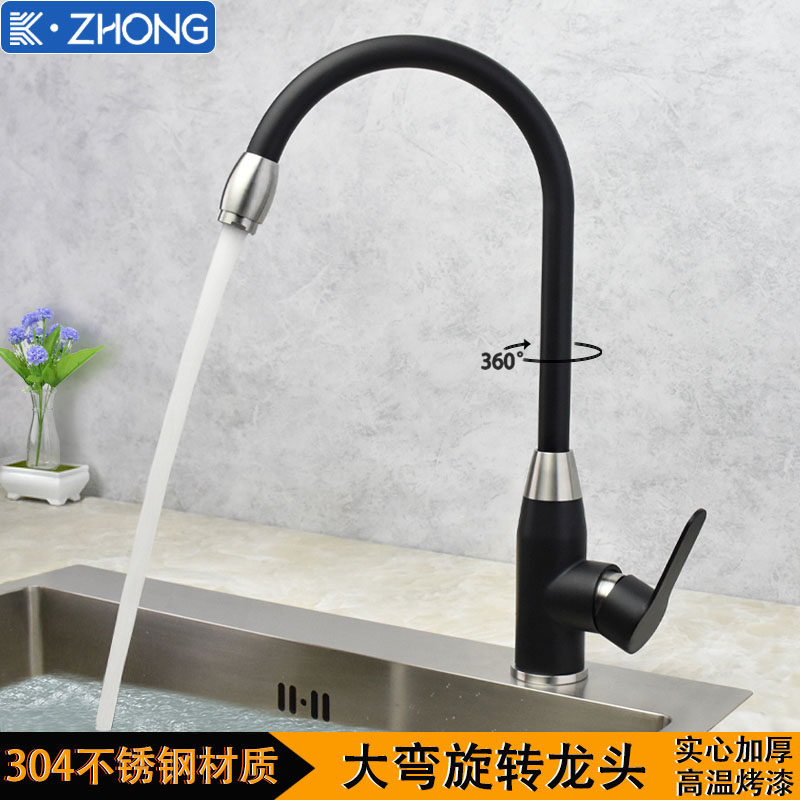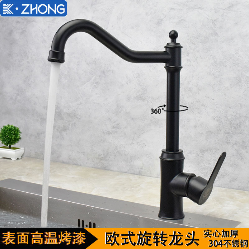 European-Style Kitchen 304 Stainless Steel Faucet Hot and Cold Household Sink Washbasin European-Style Black Faucet
