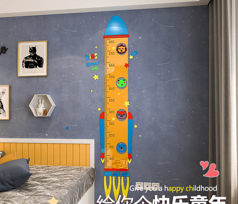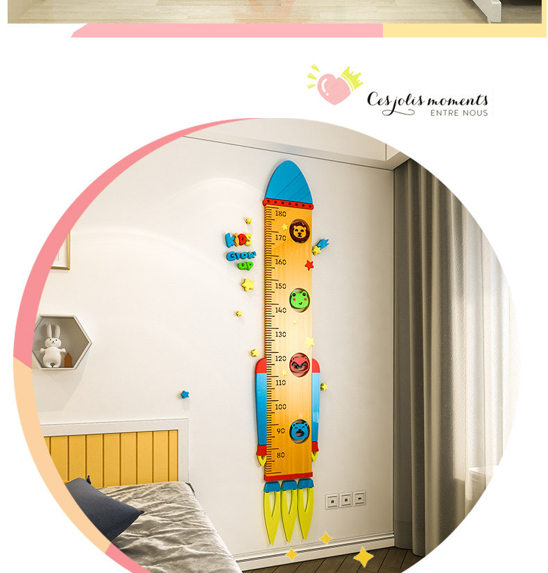 Baby Height Measurement Wall Sticker Cartoon Acrylic Children's Bedroom Wall Decoration Boy's Room Layout Three-Dimensional
