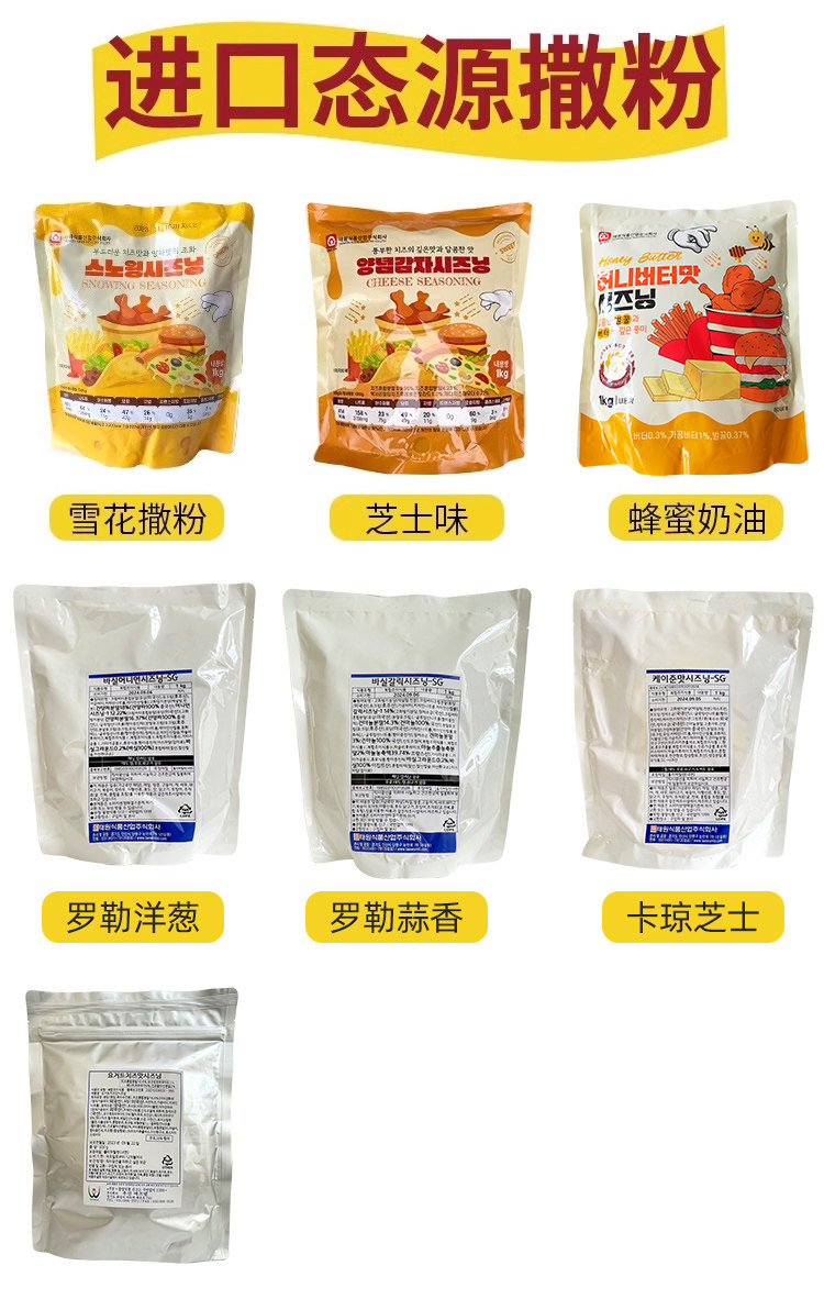 Taste Creamy Garlic 1kg,Salt and Pepper Seasoning Powder 1kg,Honey Mustard Flavored Powder 1kg,Spicy Flavor Powder 1kg,Sweet Plum Flavor Powder 1kg,Spicy Powder 1kg,Curry Cheese Flavored Powder 1kg,Yogurt Cheese Flavored Powder 500g,Cheese Flavored Powder 1kg,Tomato Flavored Powder 500g,Red Spicy Cheese Flavored Powder 1kg,Domestic Snowflake Cheese Powder 1kg,Orange Cheese Flavored Powder 1kg,Typhoon Shelter Spreading Material 1kg