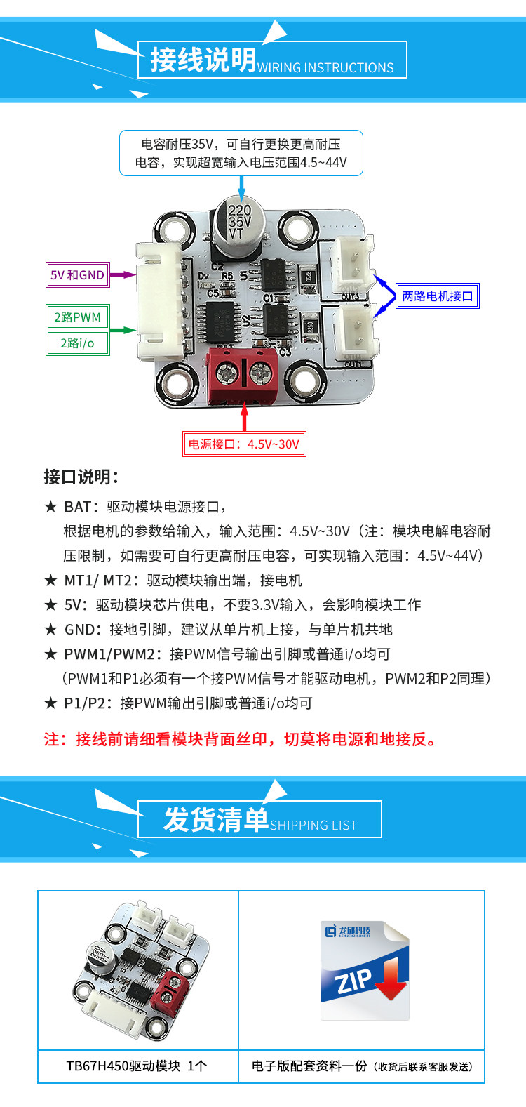 Color Classification H450 Dual-Channel Full-Bridge Driver Module,Two Xh-2P 20Cm/22Awg,Original Tb67H450Fng Chip