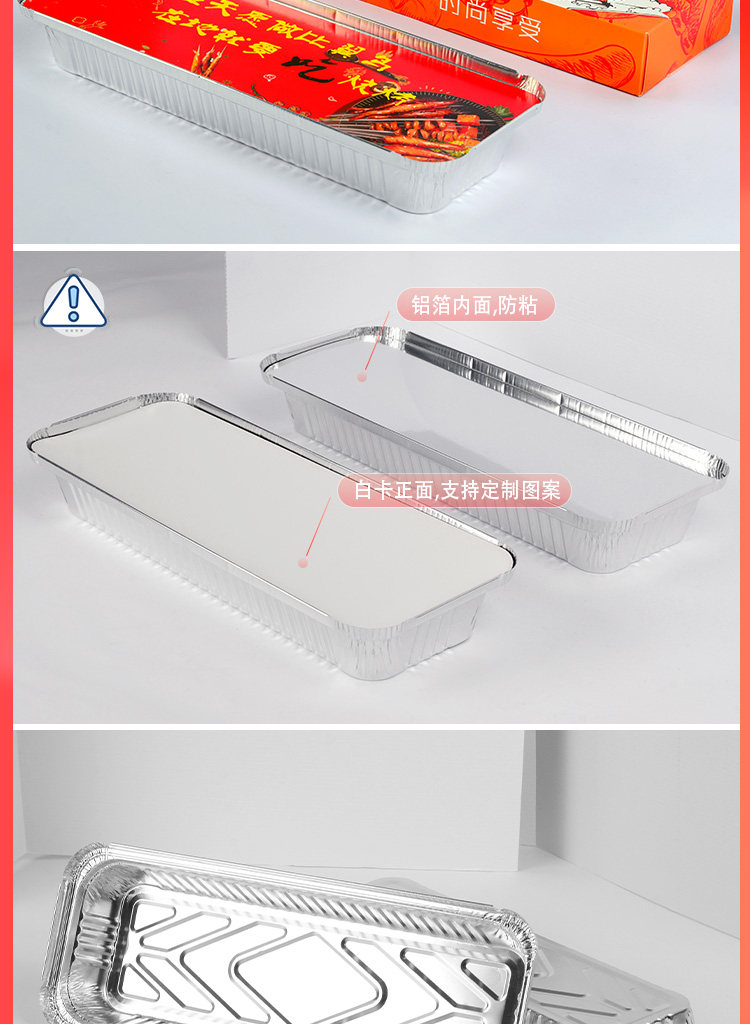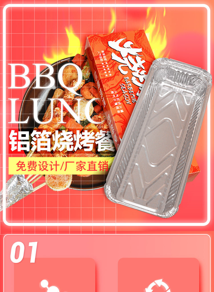 Tin Foil Box Barbecue Disposable Rectangular Tin Foil Box Insulated Takeaway Skewers Exquisite Meal Box Late-Night Snack Packaging Box