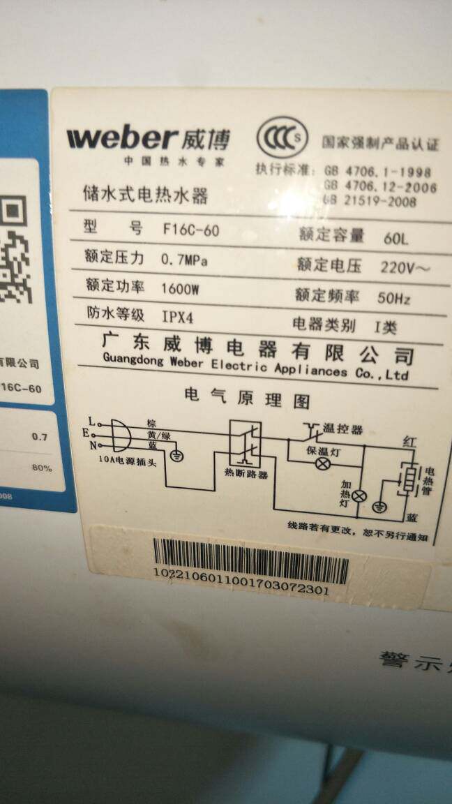 Weber F16C-60 Electric Water Heater Accessories Include Built-In Anti-Electricity Barrier, Red Outlet Pipe, Blue Cold Water Pipe