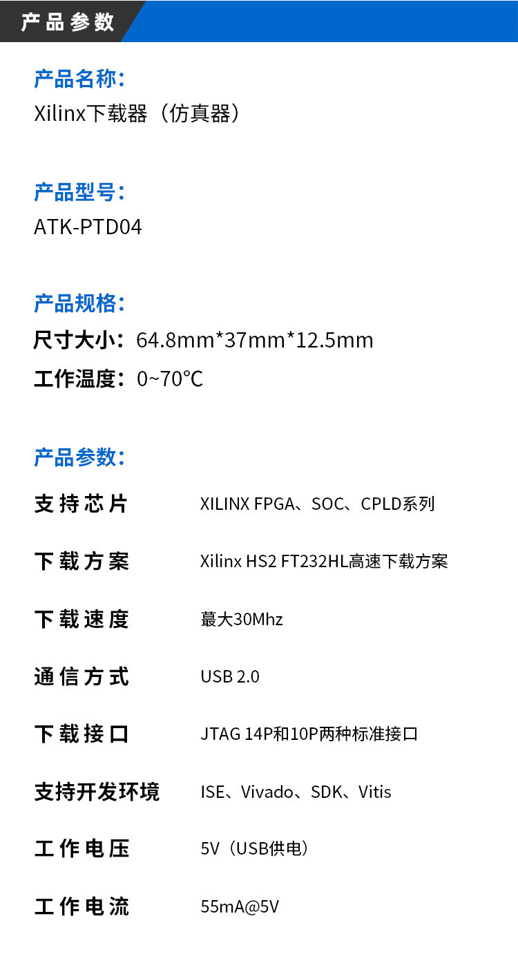 Zhengdian Atom Xilinx Downloader Fpga Zynq Mpsoc Simulation Programming Online Debugging Atk-Ptd04