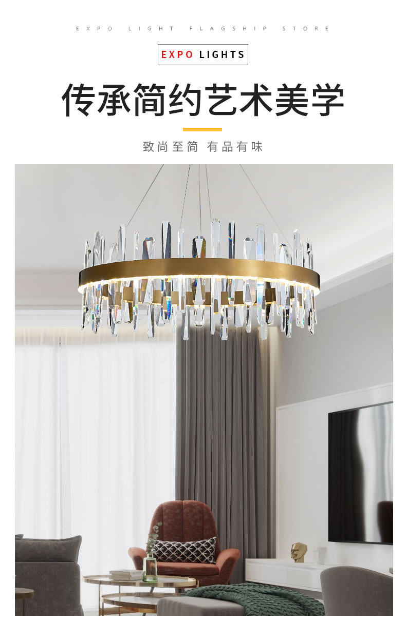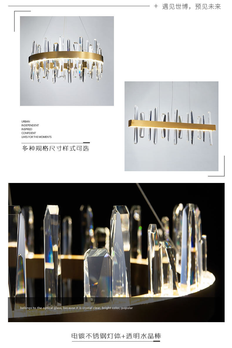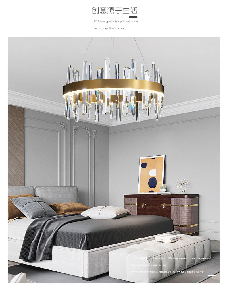 Post-Modern Minimalist French Light Luxury Living Room Chandelier Stainless Steel Crystal Bedroom Lamp Dining Room Crystal Piece Creative Lighting Fixtures
