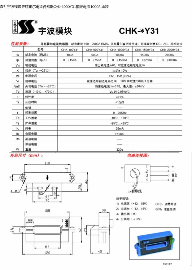 Sensha Yubo Module Open-Loop Hall Current Sensor Chk-1000Y31 Current 1000A Order Within 7 Days