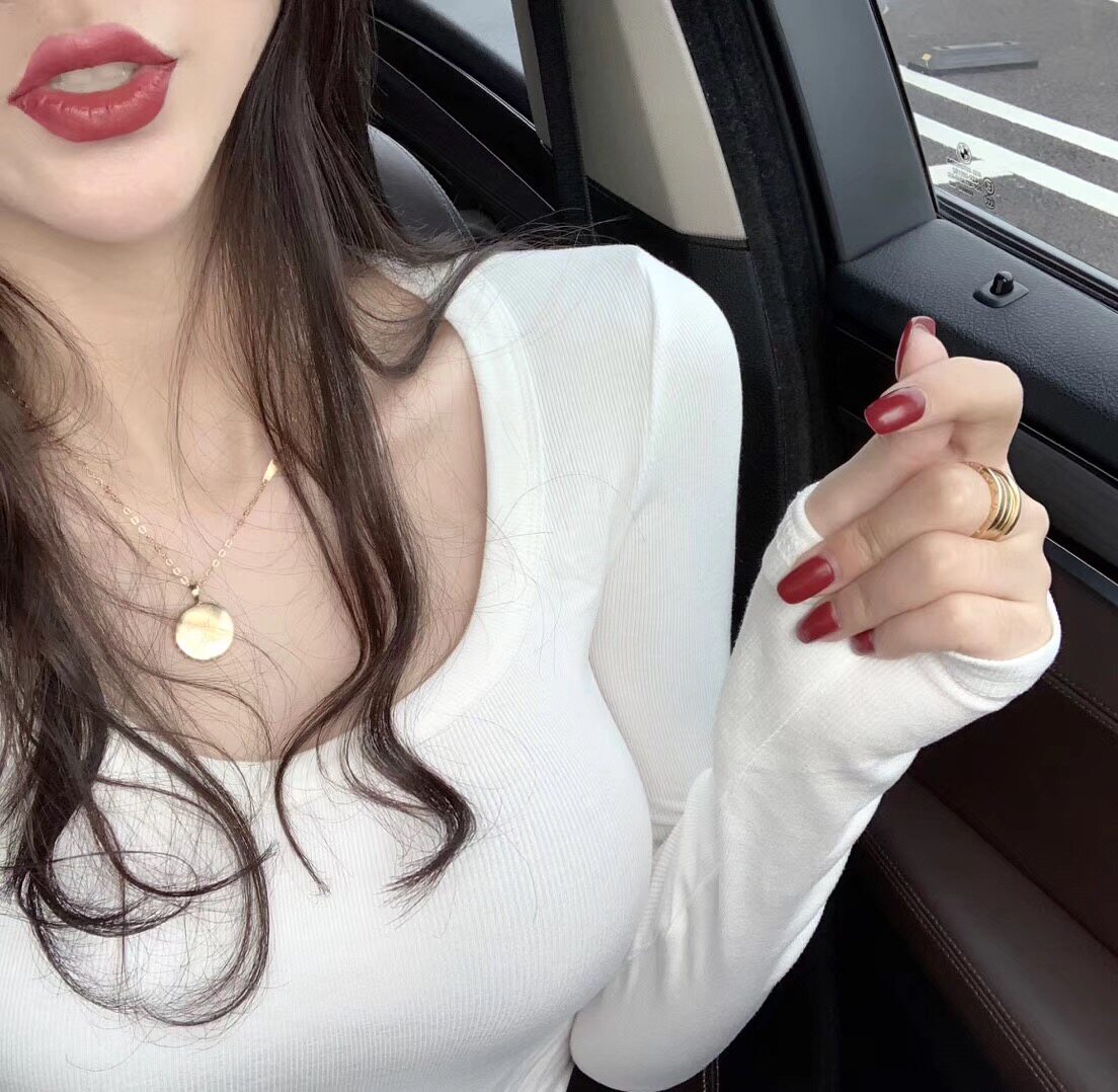 2023 Early Autumn ins U-Neck Long Sleeve T-Shirt for Women, Tight-Fitting, Sexy, Slimming, Versatile Inner Layer, Stylish Base Shirt