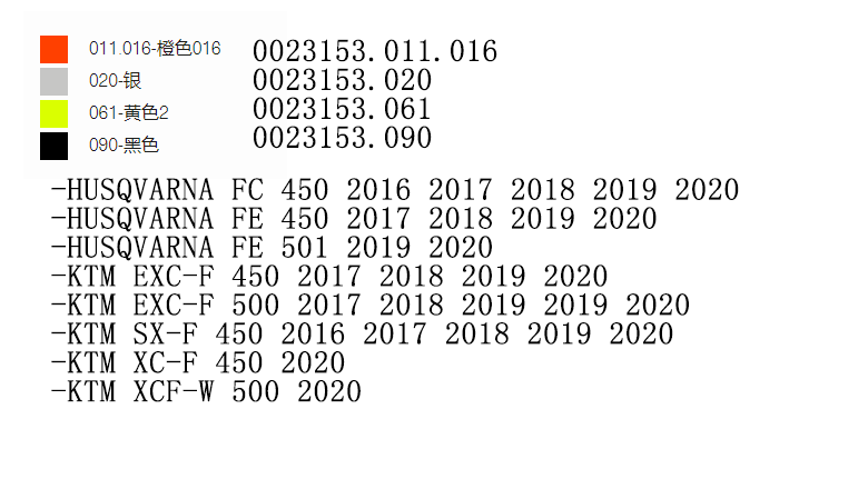 Color Classification 24-25 Hus Ktm 2-Stroke 125-150Cc Black,24Ktm Husqvarna Two-Stroke Black,24Ktm Husqvarna Two-Stroke Orange,24-25 Hus Ktm 4-Stroke 250-350Cc Black,24Ktm Husqvarna Four-Stroke 450-500Cc Black,24Ktm Husqvarna Four-Stroke 450-500Cc Orange,Ktm Husqvarna/2 Stroke Orange,Ktm Husqvarna/2 Stroke/Black,Ktm Husqvarna White,Ktm Husqvarna Orange 23469,Ktm Husqvarna Black 23469,Ktm Husqvarna/4 Stroke/Black,4-Stroke Ktm Husqvarna/Orange 23153,4-Stroke Ktm Husqvarna / Black 23153,4-Stroke Ktm Husqvarna / Yellow 23153,Ktm Husqvarna / Black,22-25 Honda Red,22-25 Honda Black,Honda-Red Crf250R,Honda-Black Crf250R,Honda-Red Crf450R,Honda-Black Crf450R,Yamaha Blue Yz125,Yamaha Black Yz125,Yamaha Blue Yz250,Yamaha Black Yz250,Yamaha Blue Yz450F,Yamaha Black Yz450F,23-24 Yz450 F/Fx Blue,23-24 Yz450 F/Fx Black,Crf450R/Rx (21-24 Models) Red,Crf450R/Rx (21-24 Models) Black,23-24Ktm Husqvarna 250/350 Orange,23-24 Ktm Husqvarna 4-Stroke 250/350 Black,2022-2025 Aprilia Tuareg 660,25 Models of Yz250F/Fx/Wrf-Black,25 Models of Yz250F/Fx/Wrf-Blue,19-24 Yamaha T700,25 Yamaha T700 Models