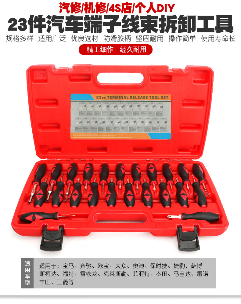 Model 23-Piece Automotive Terminal Removal Tool Kit - Wire Harness Plug Unplugger