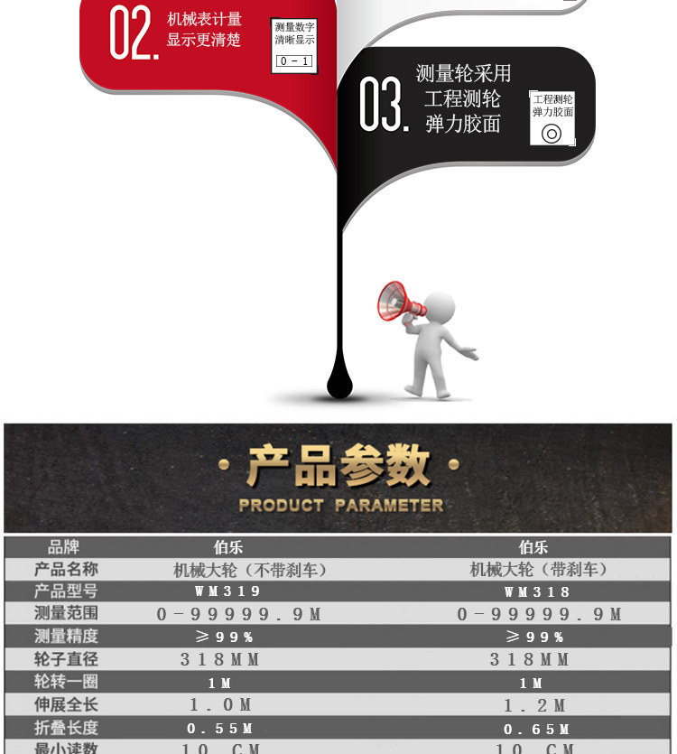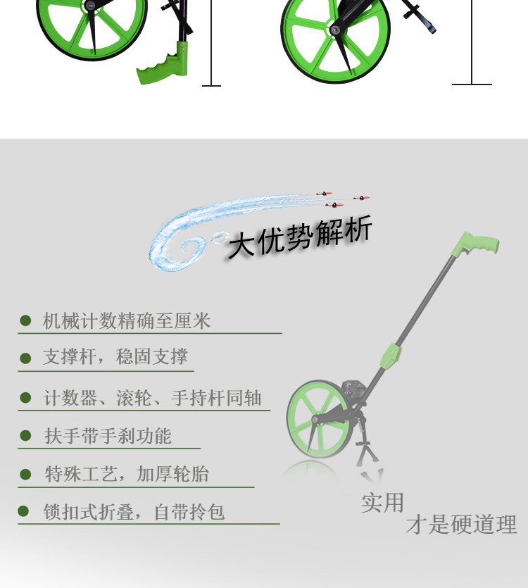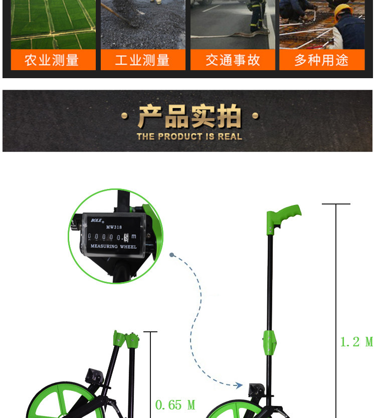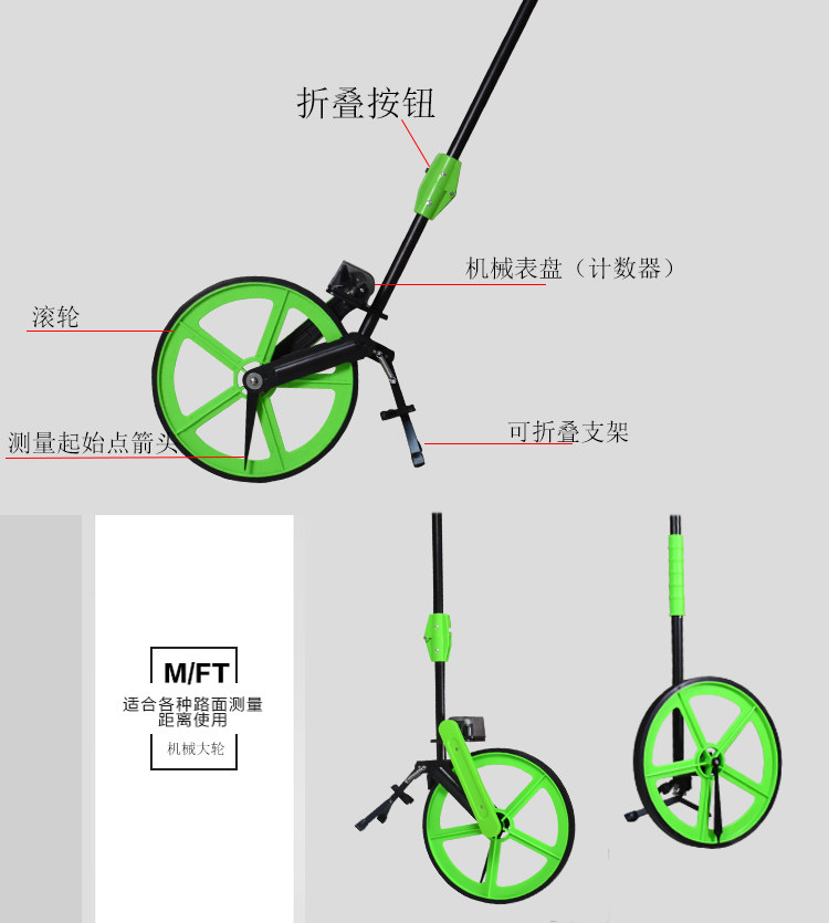 Boluo Rolling Wheel Distance Meter Mw318 Hand-Push Mechanical Meter Counter Portable Road Distance Measuring Instrument