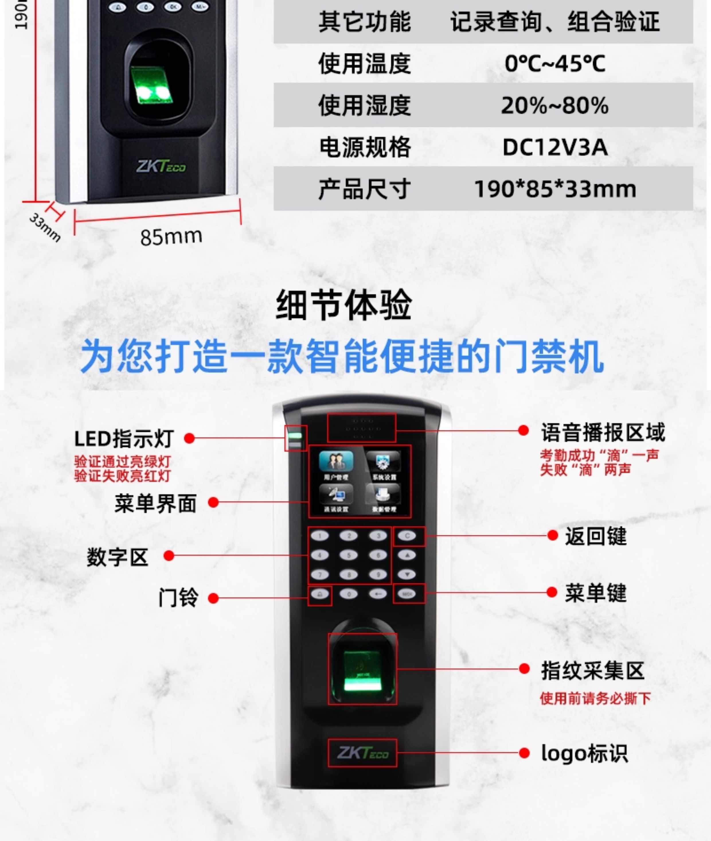 ZKTeco entropy base F7 office attendance fingerprint access control system all-in-one electronic glass door electric plug-in magnetic lock