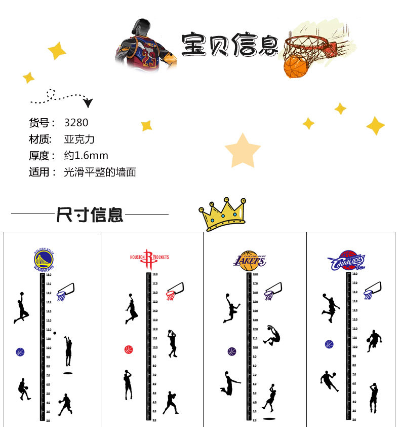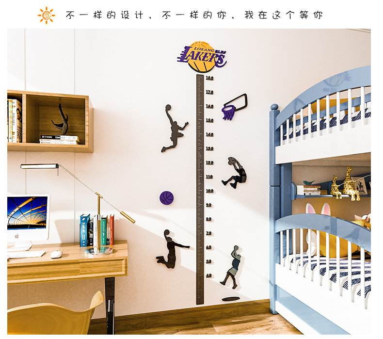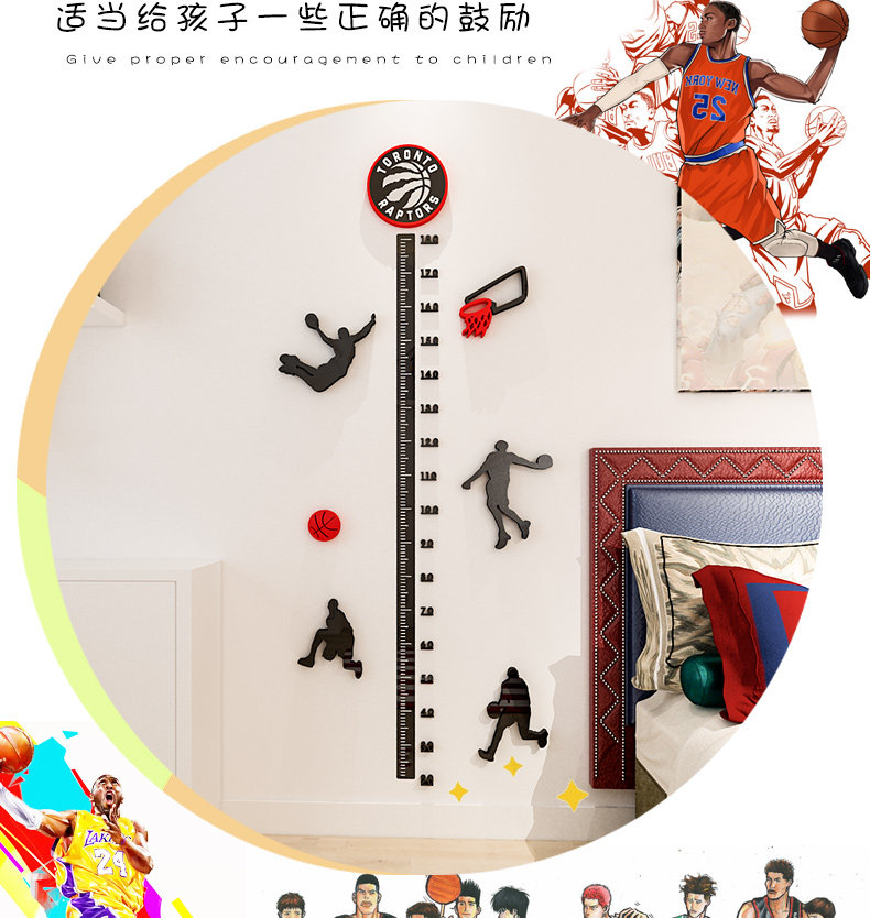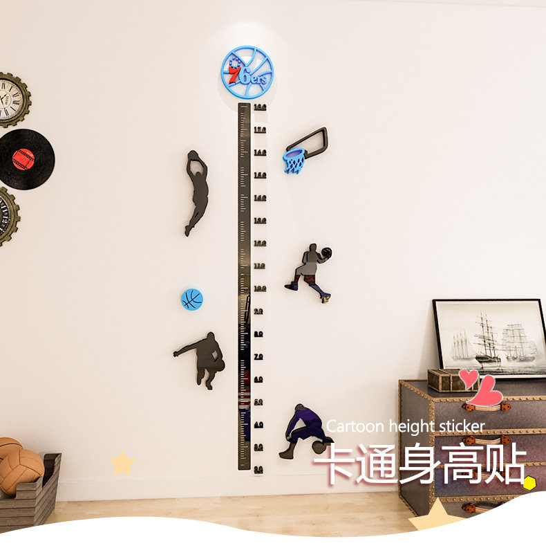 Height Wall Sticker 3D Stereo Boy's Bedroom Wall Painting Children's Room Bedside Decoration Cartoon Basketball Height Measurement Sticker