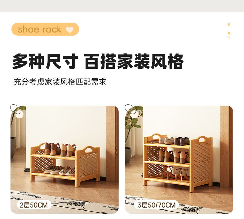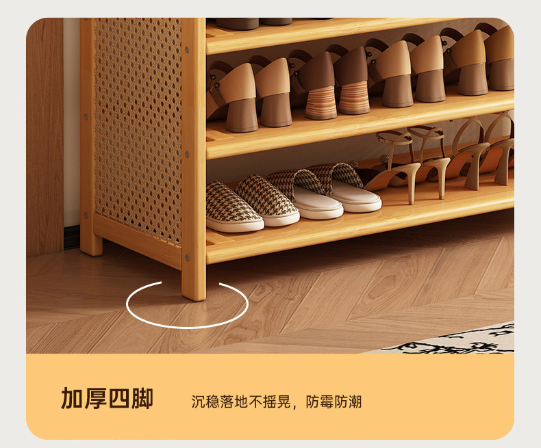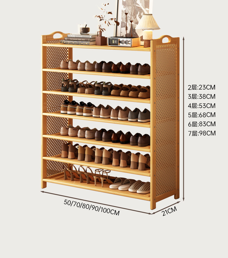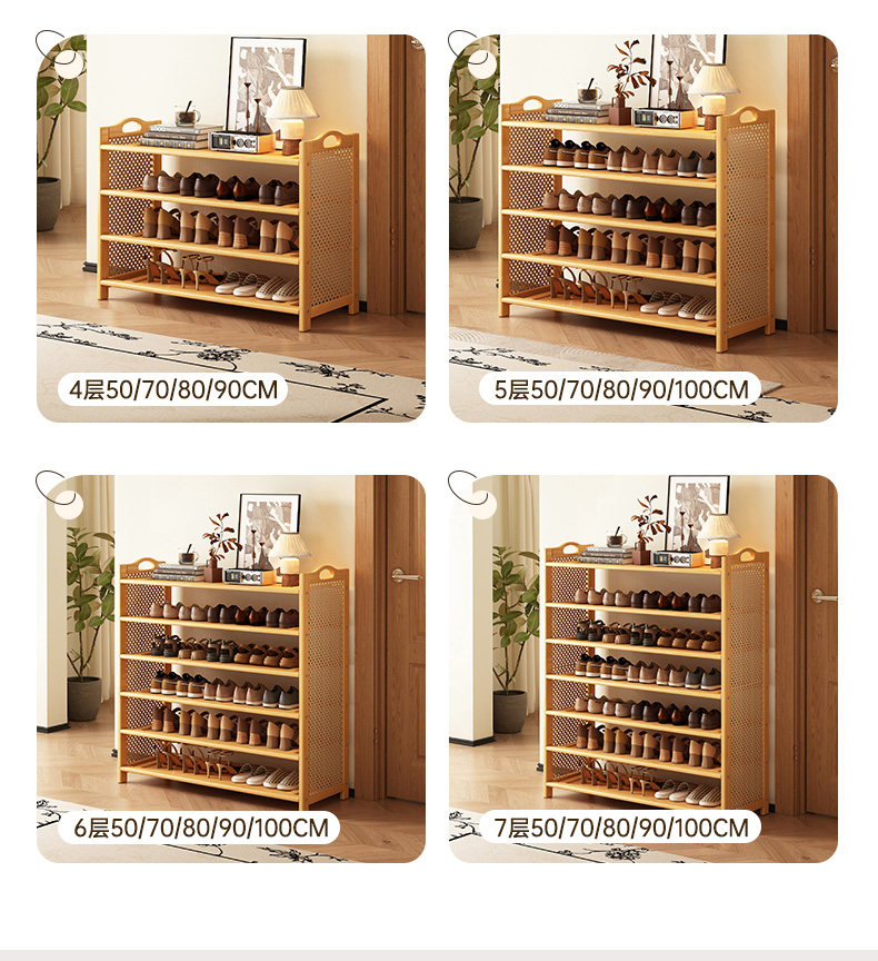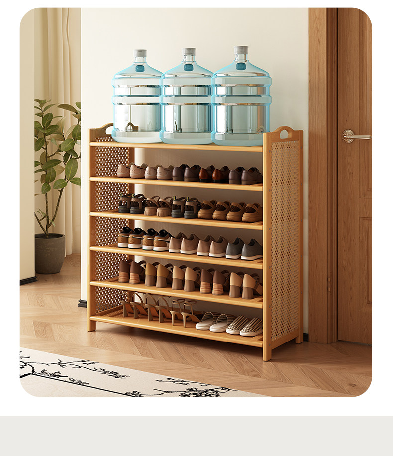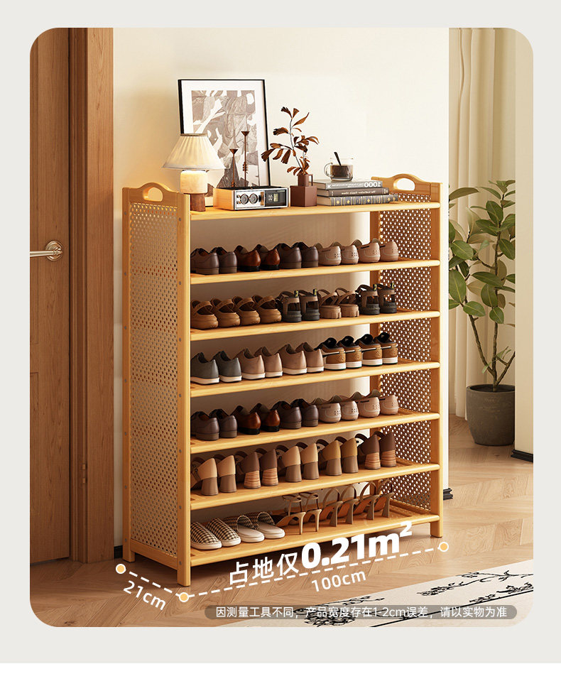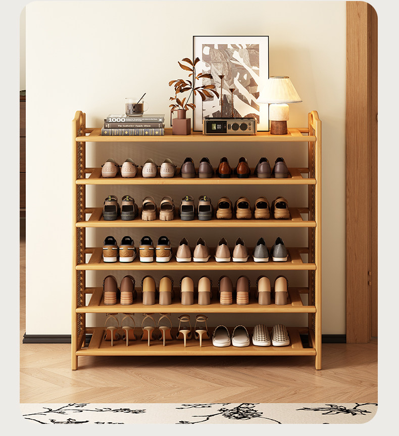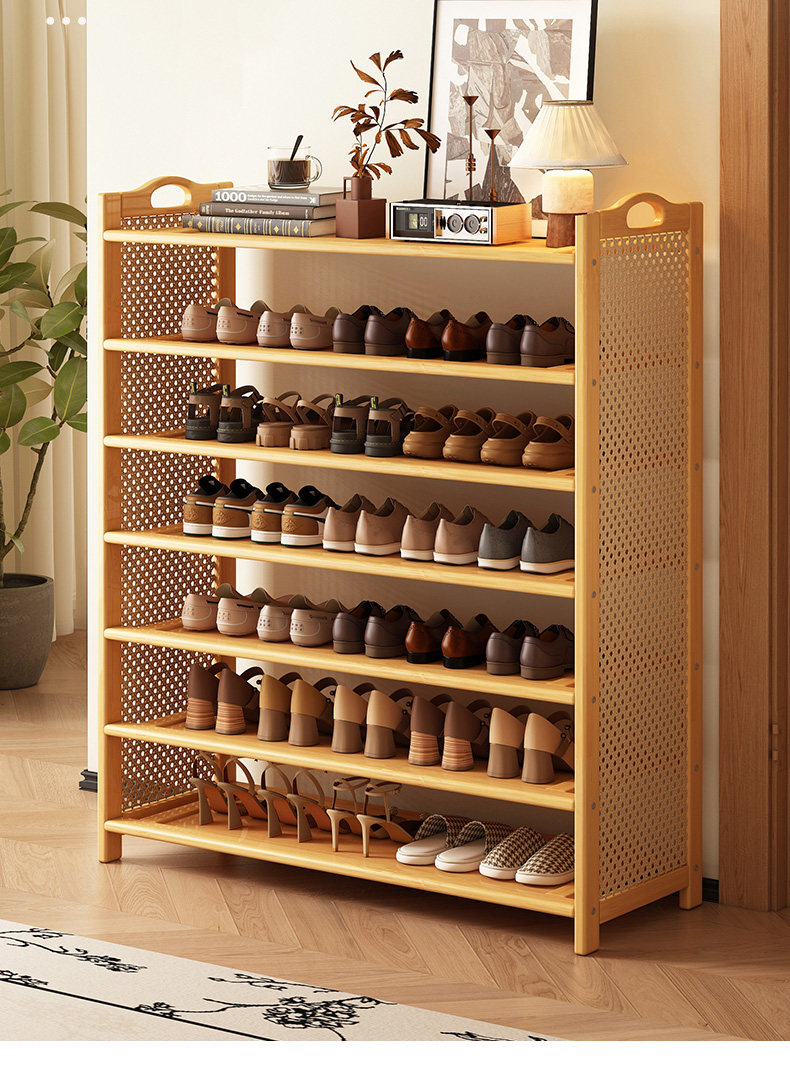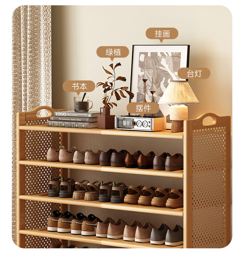 Simple Multi-Layer Shoe Rack at the Entrance, Made of Solid Wood and Bamboo, Dust-Proof, Suitable for Dormitories and Home Use, Large Capacity, Shoe Cabinet Without Doors