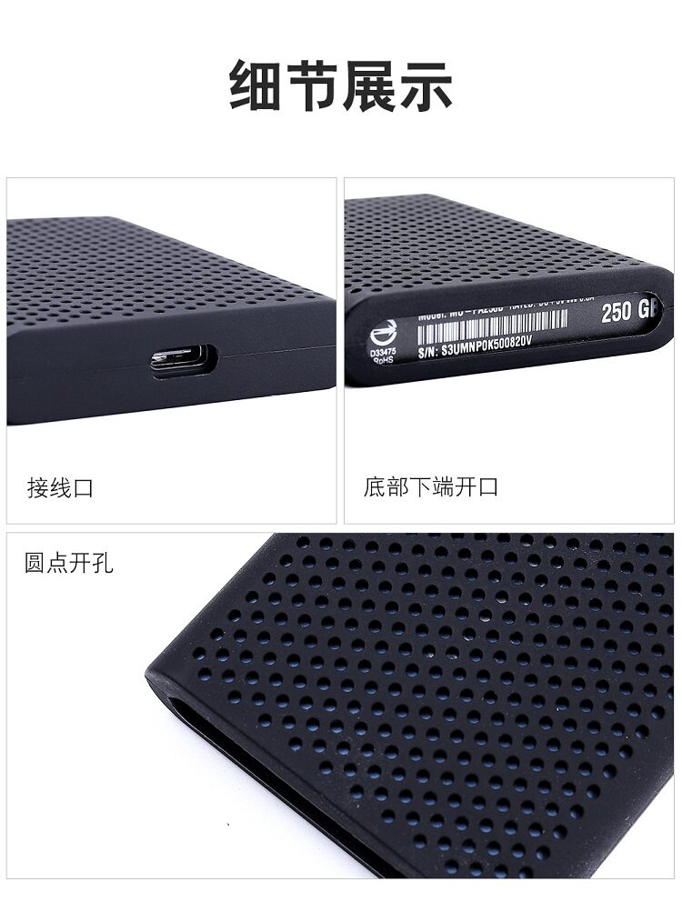 Suitable for Samsung T5 T3 Solid-State Mobile Hard Drive Silicone Case Protective Cover Anti-Fall T5 T3 Breathable Hard Drive Case