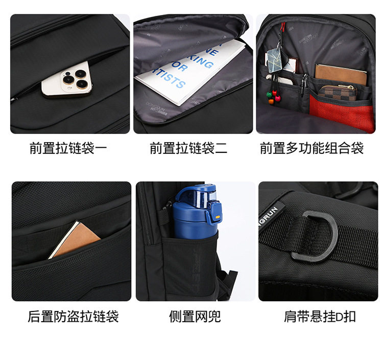 Internal Structure Cell Phone Bag,Mesh Bag,Dark Grid,Laminated Zipper Bag,Computer Pocket,Camera Pocket,Certificate Slot