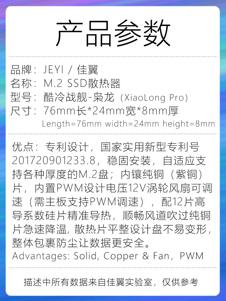 Jiayi Cool Cold Battleship-Meilong Nvme Fan Radiator Copper Double-Sided M.2 Ssd Ngff Pwm Adjustable Speed