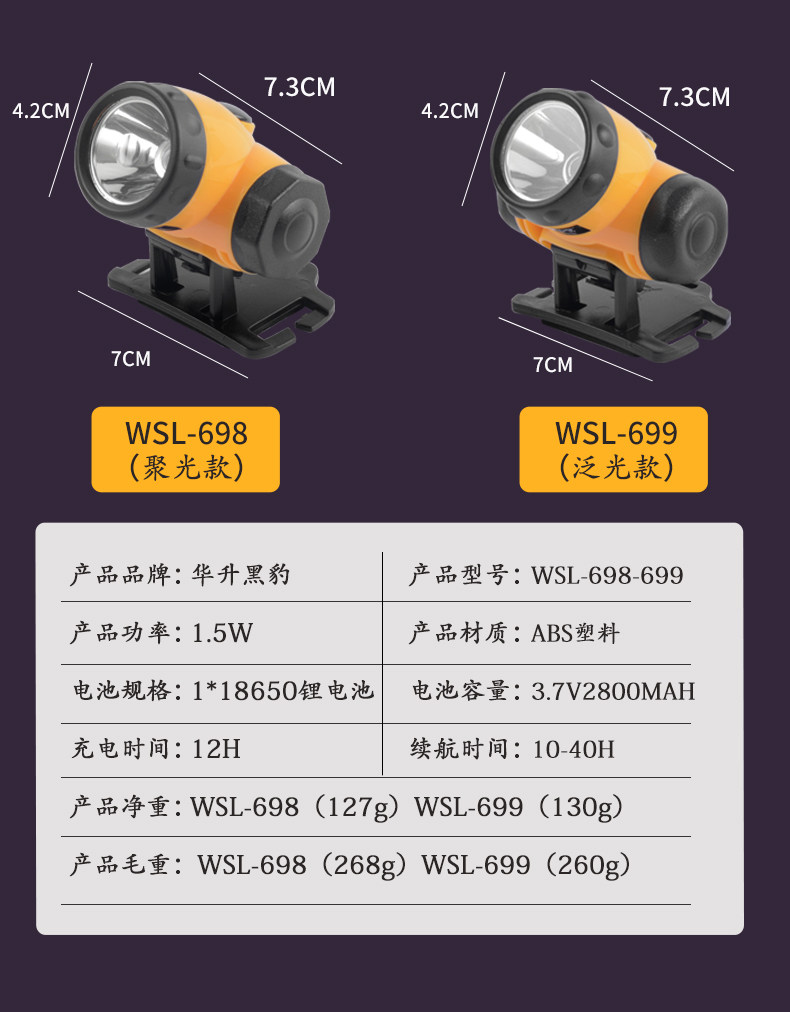Continuous Lighting Time 696/697 Has a Battery Life of 6-24 Hours, 698/699 Has a Battery Life of 10-40 Hours