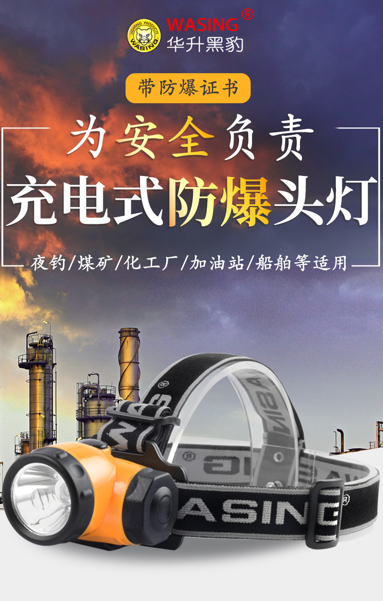 Huasheng Black Panther Explosion-Proof Headlamp, Head-Mounted Flashlight with Certificate, Strong Light, Rechargeable, Outdoor Long-Range Led for Inspection and Firefighting