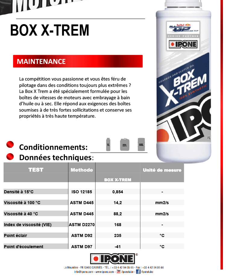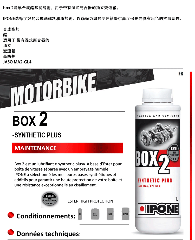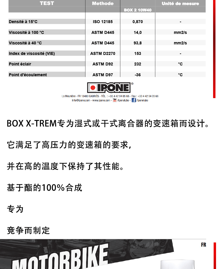 French Ipone Motorcycle Clutch Gearbox Oil Engine Transmission Lubricant Fully Synthetic Gear Oil