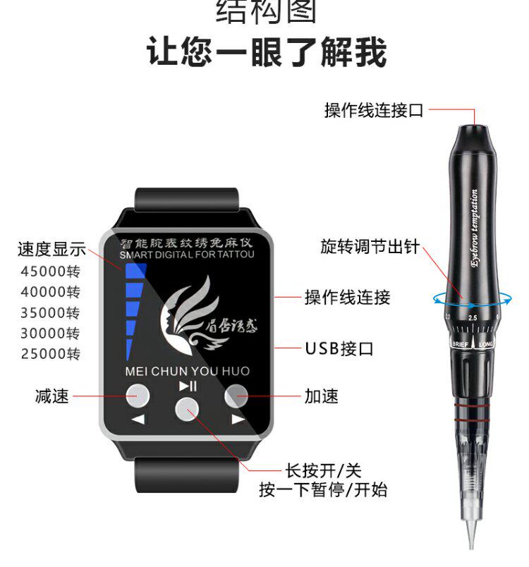 Eyebrow and lip temptation, numb-free tattoo embroidery machine, numb-free and painless eyebrow tattoo and contact line, fully disposable all-in-one watch machine