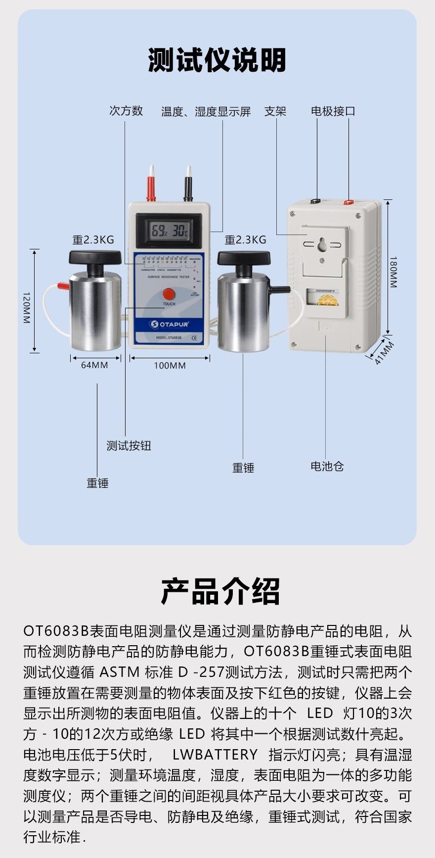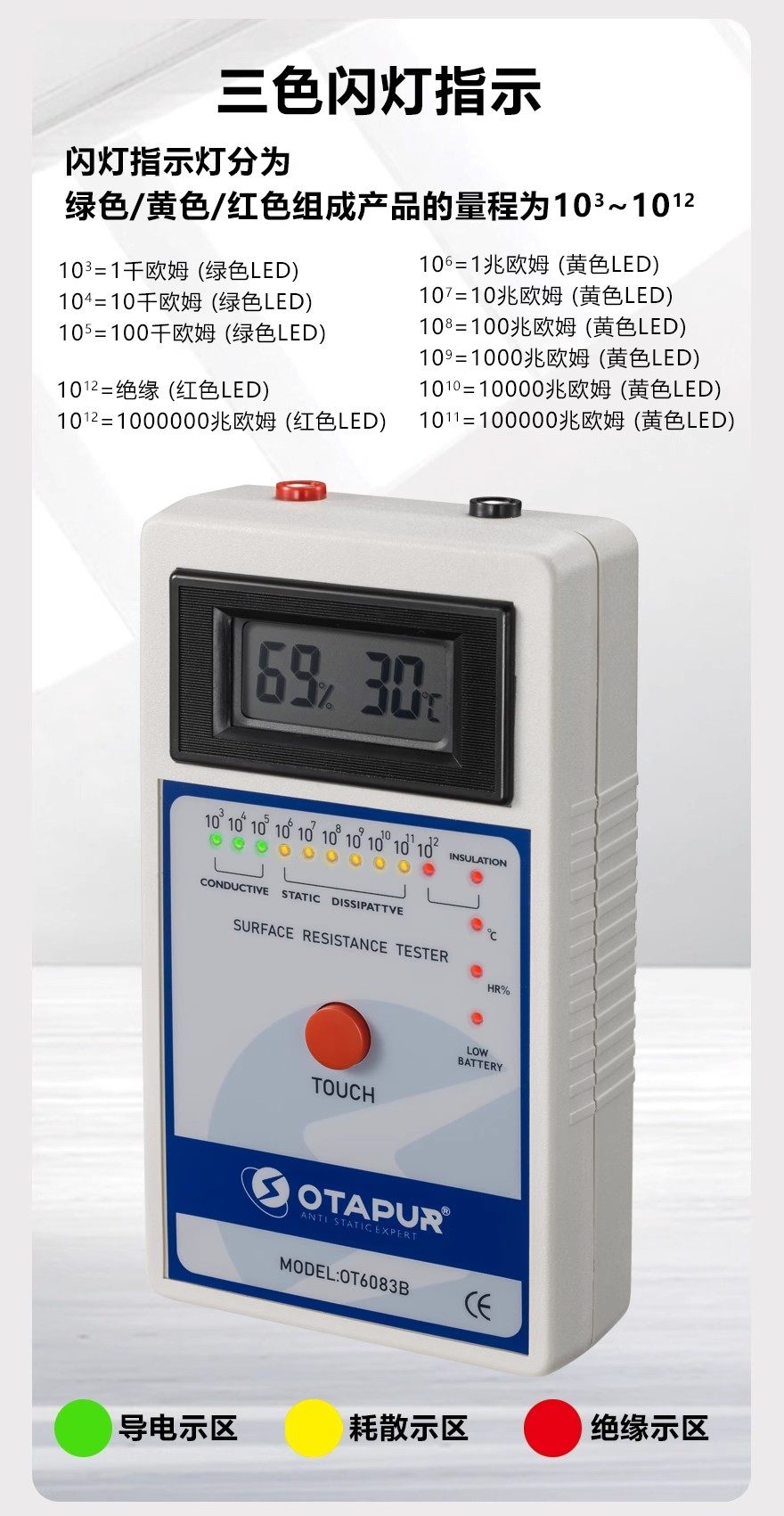 Otopu Ot6083B Hammer-Type Surface Resistance Tester Surface Impedance Tester Anti-Static Tester