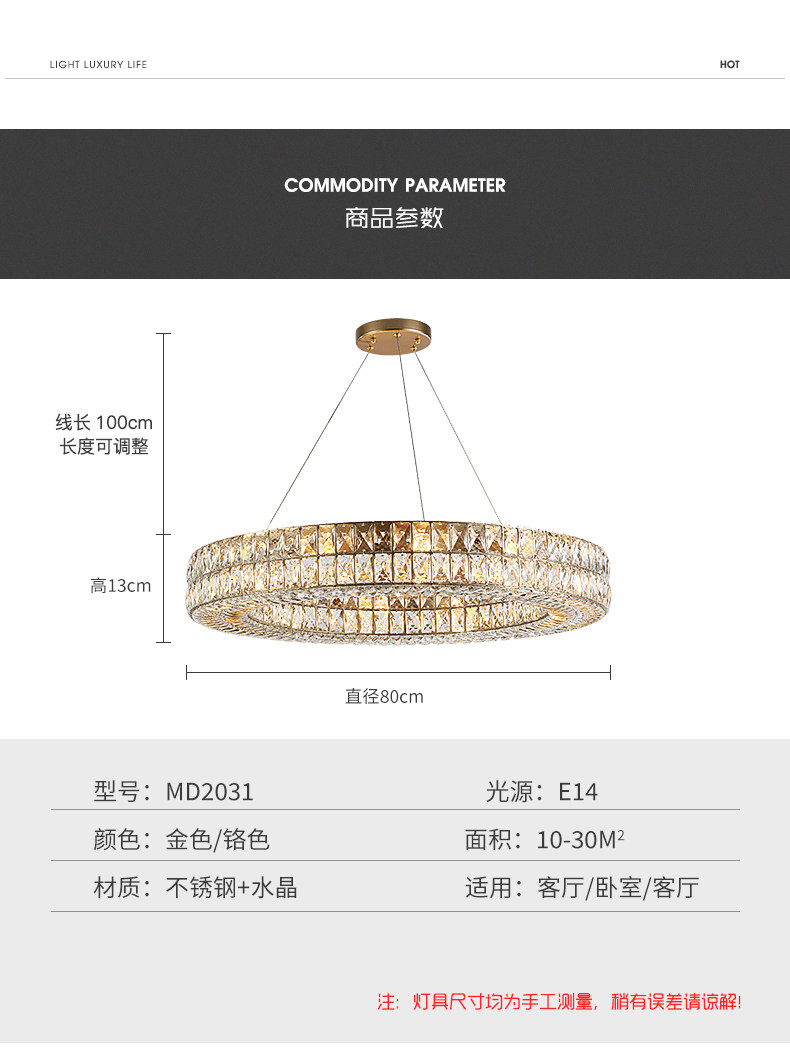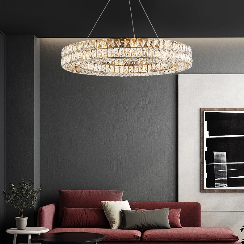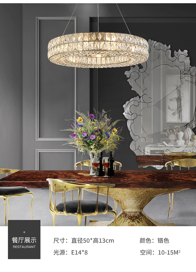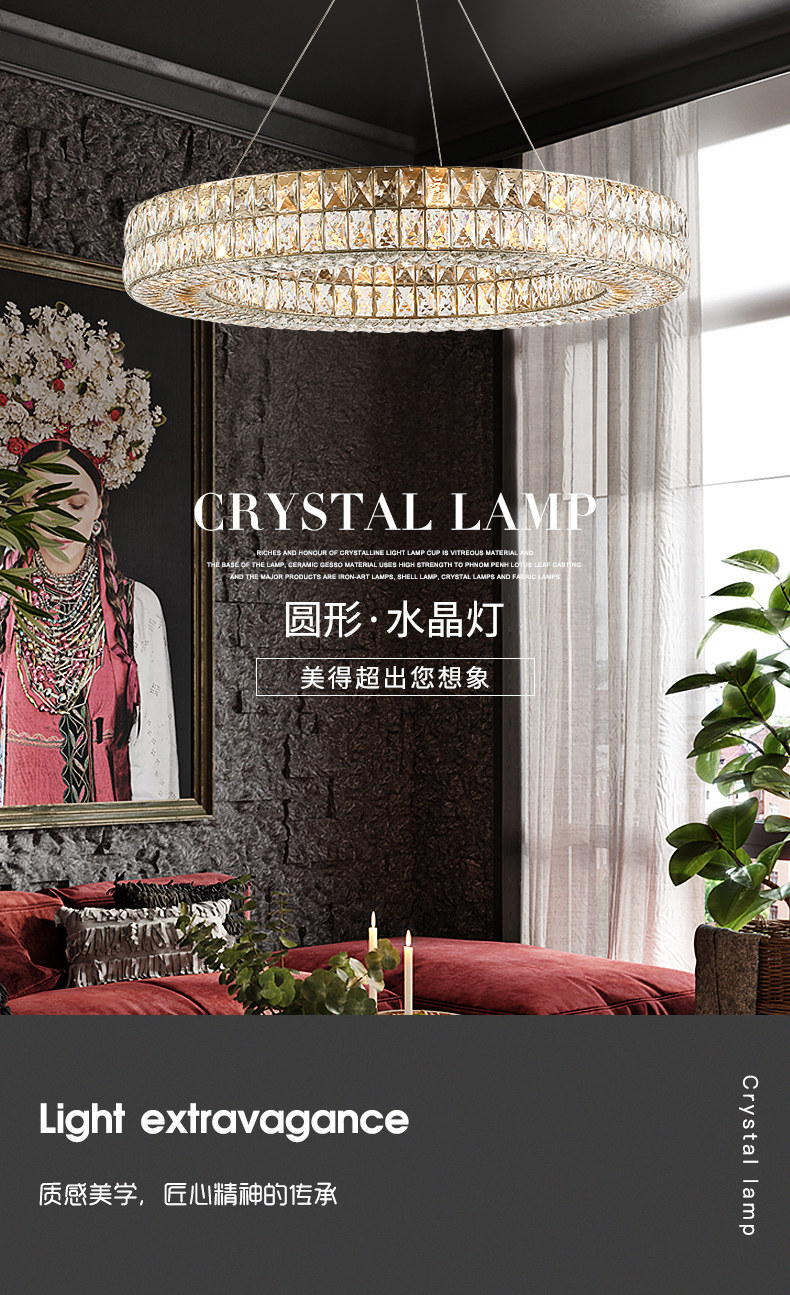 Postmodern Light Luxury Chandelier for Living Room, 2025 New Model, Modern Minimalist Style, Elegant Circular Crystal Chandelier