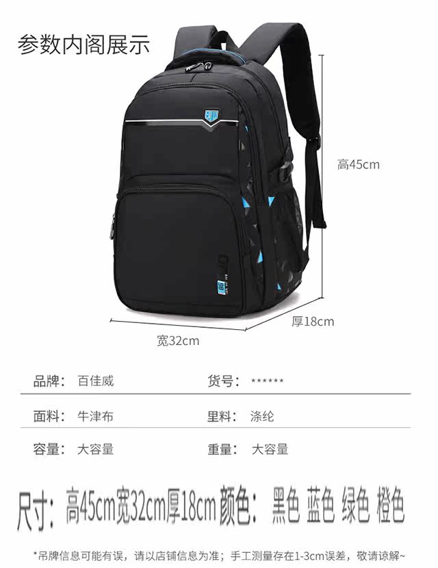 School Bag for Boys, Large Capacity, Spine-Protecting, Weight-Reducing, Waterproof Backpack for Middle School Students, Teenagers in Grades Five and Six