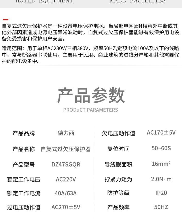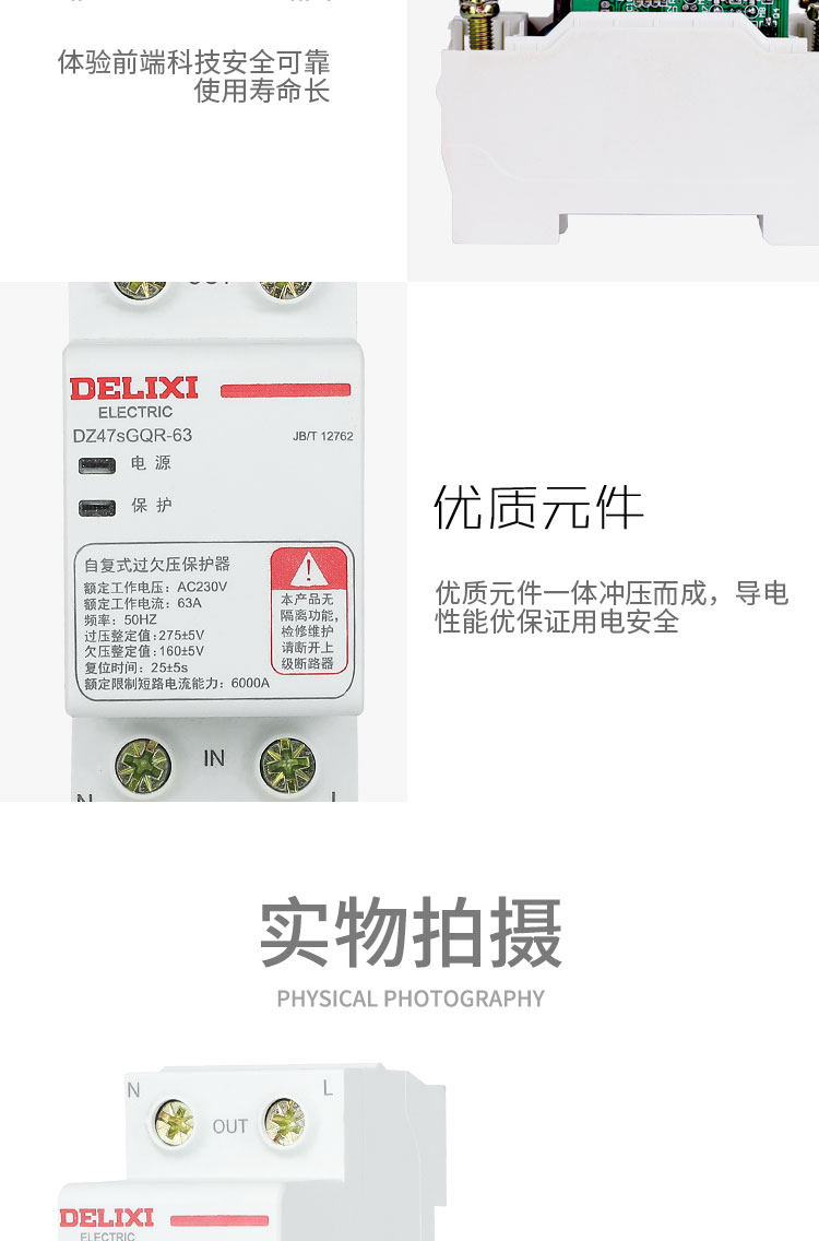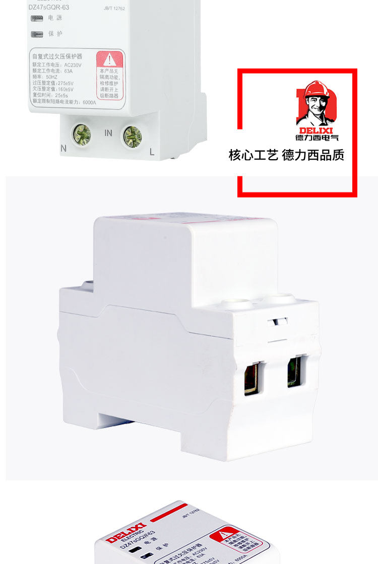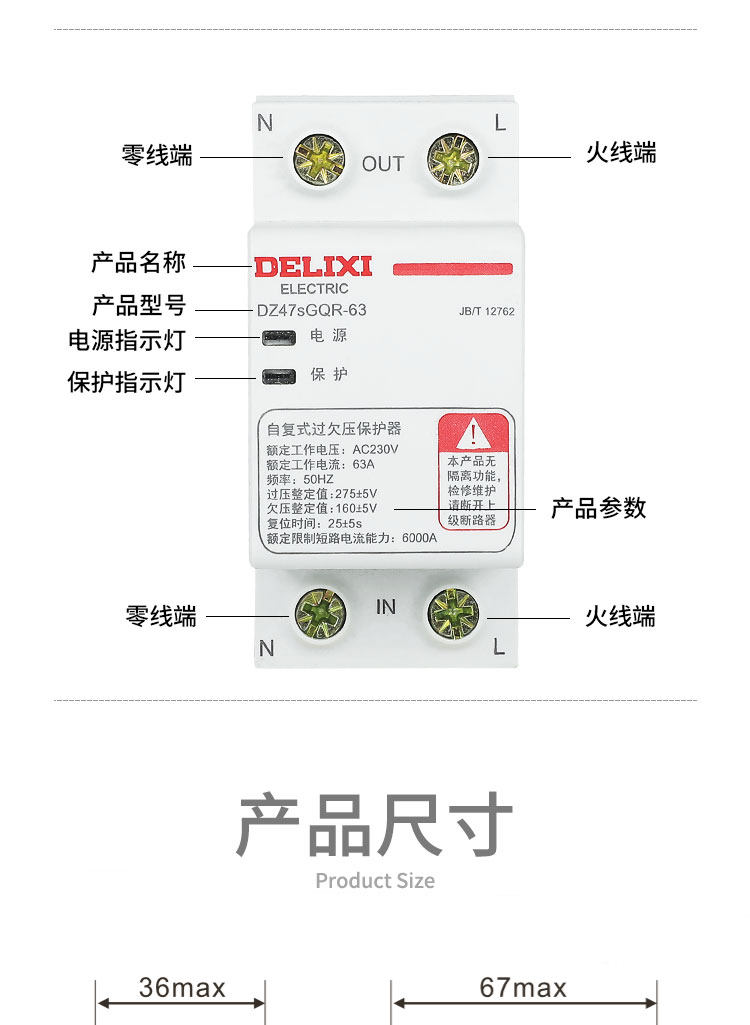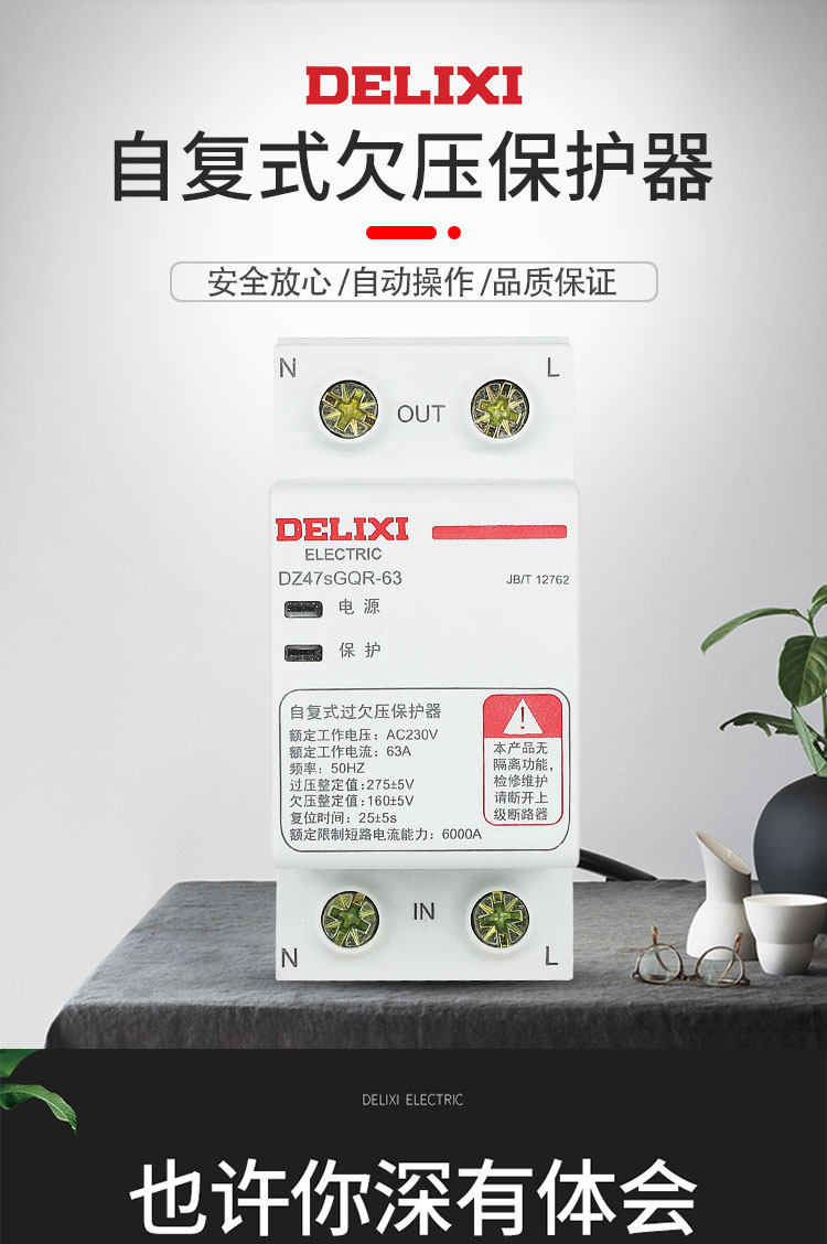 Delixi Self-Restoring Overvoltage and Undervoltage Upper and Outlet Dz47Sgqr-63 63A 2P Undervoltage Protection Overvoltage Protection