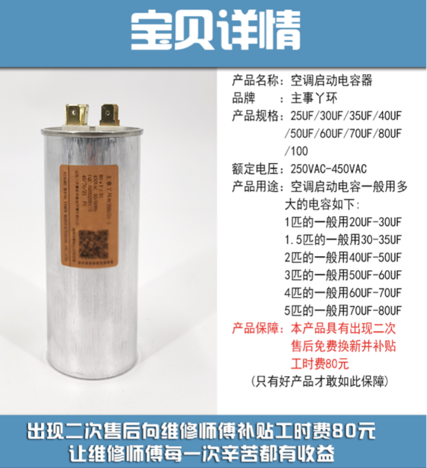 Main Unit Attendant Cbb65 Air Conditioner Compressor Starting Capacitor 25Uf/30/60/45/50/35Uf450V