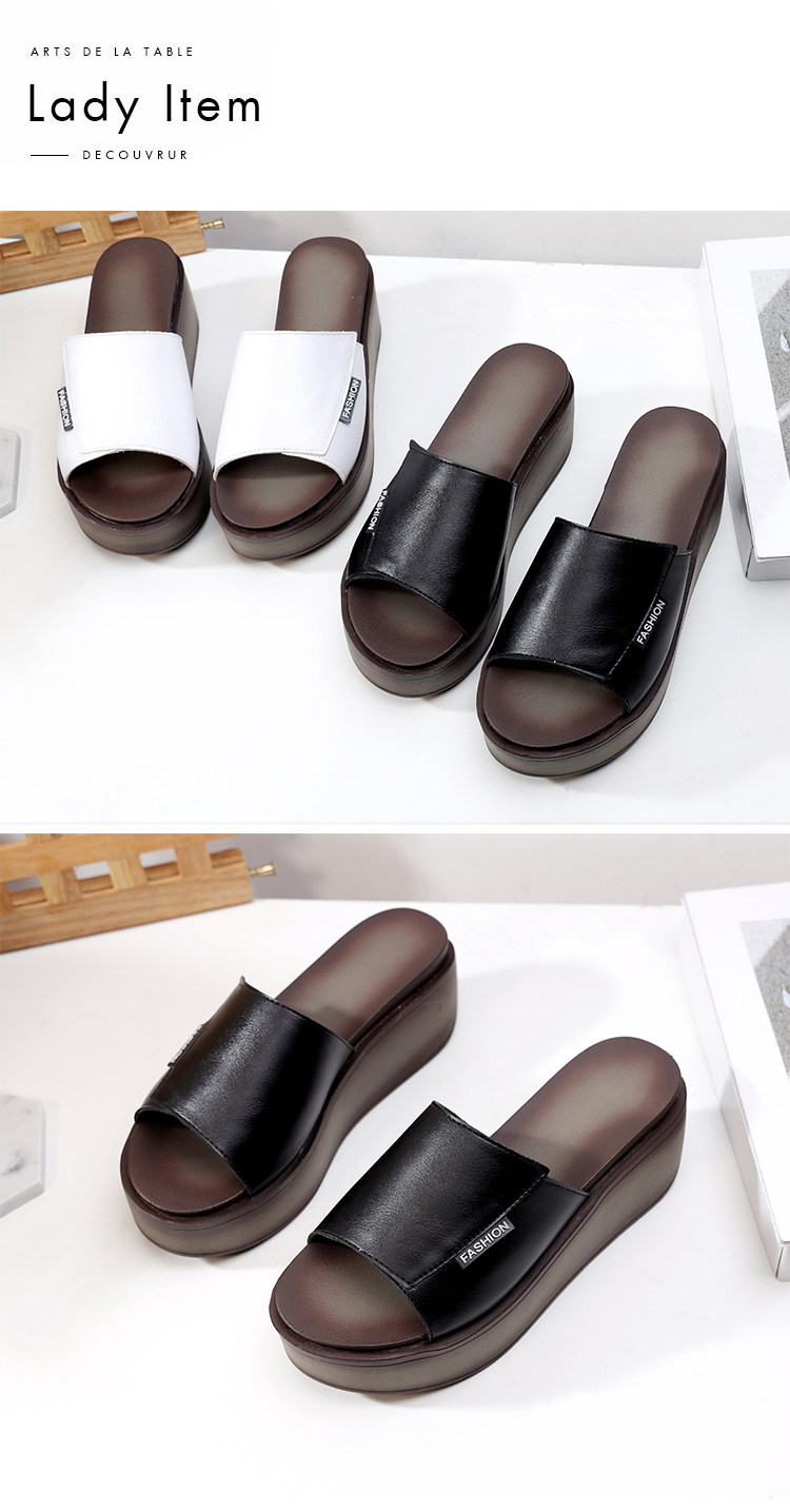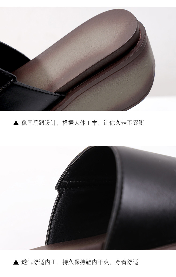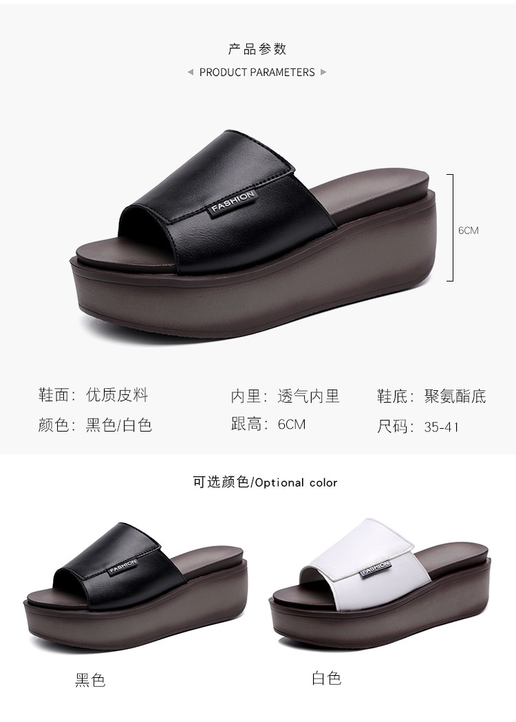 Platform-soled slippers for women, thick-soled waterproof platform shoes for women, 2024 new summer style outer wear, versatile, slimming, high-heeled leather toe shoes